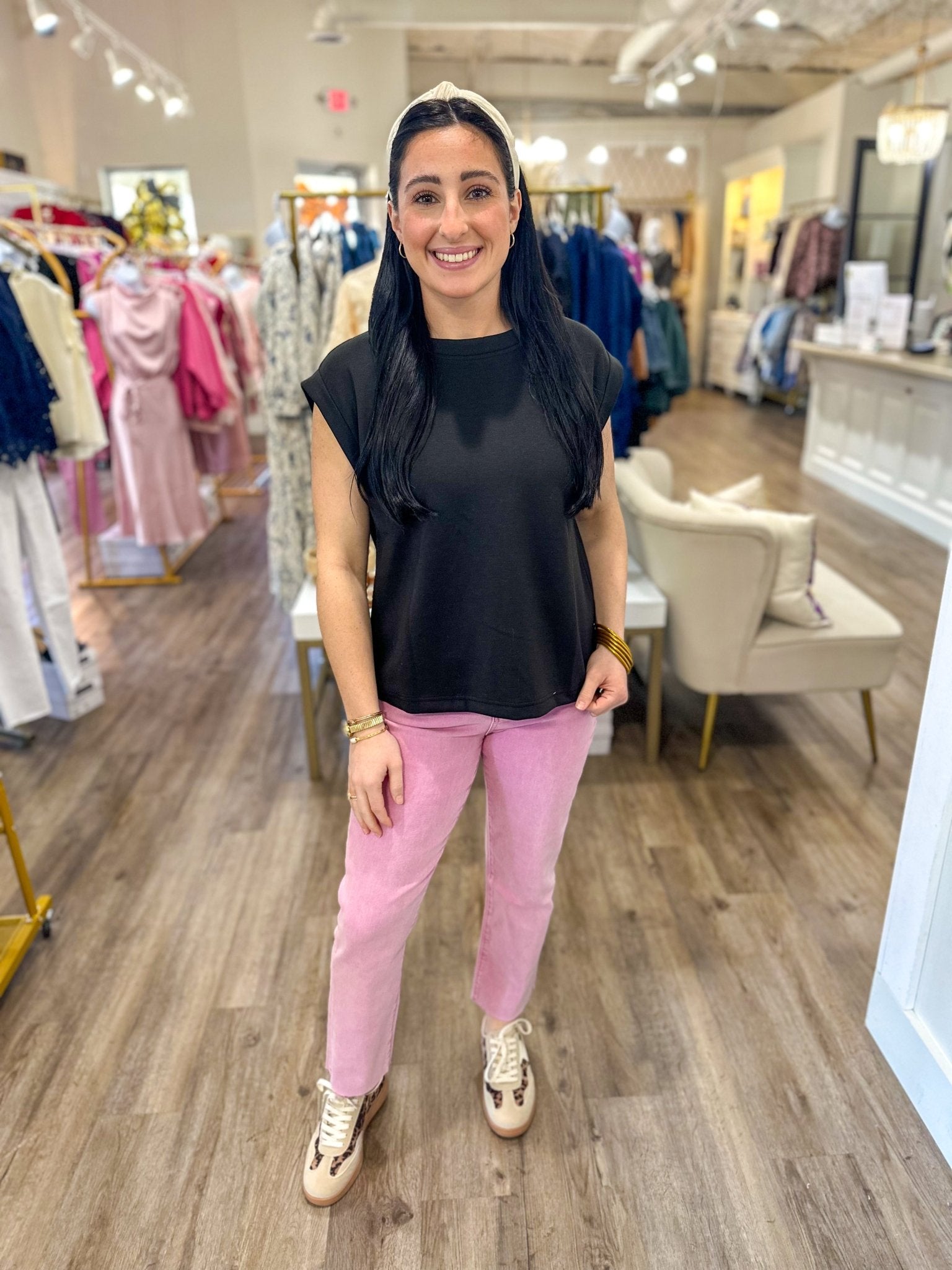 Comfort meets effortless style in this must-have scuba top. Designed in a soft sleeveless silhouette feels amazing on while still looking put-together. An easy everyday piece you’ll reach for again and again.