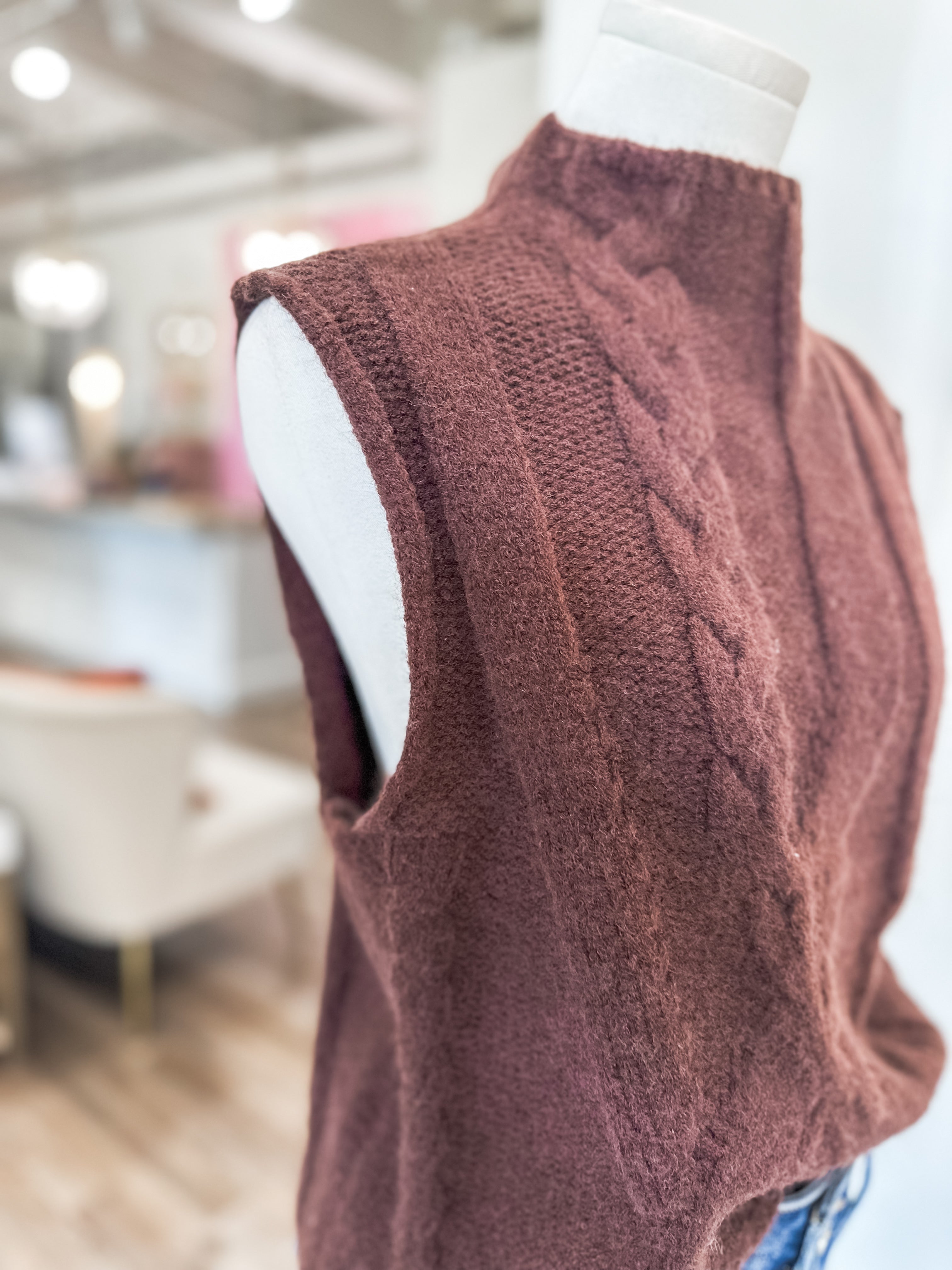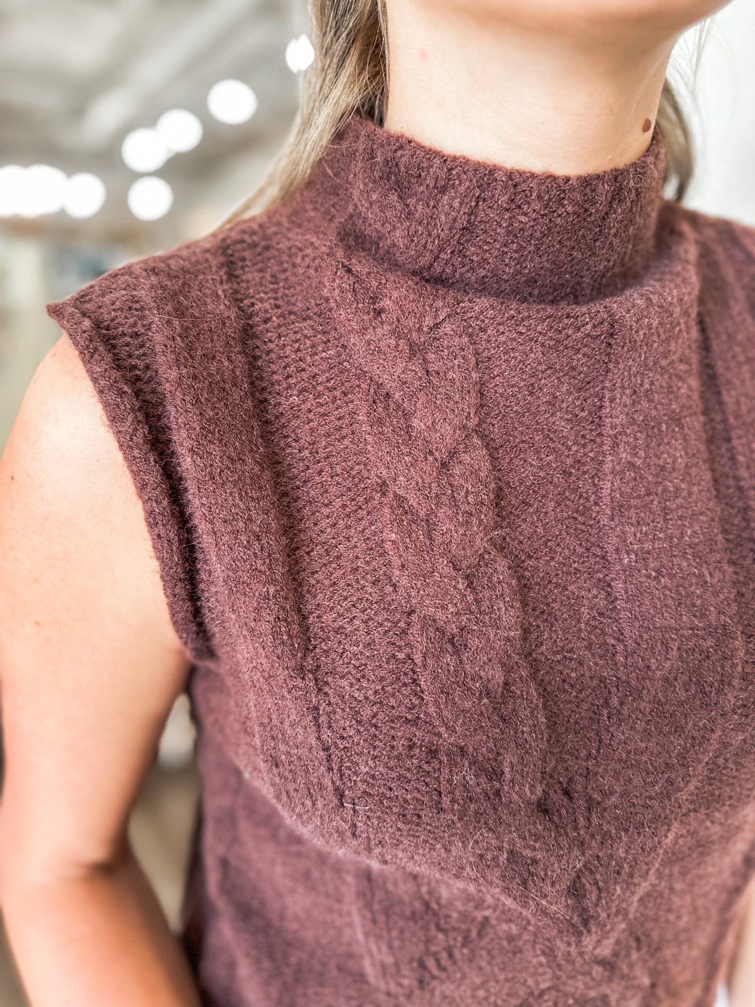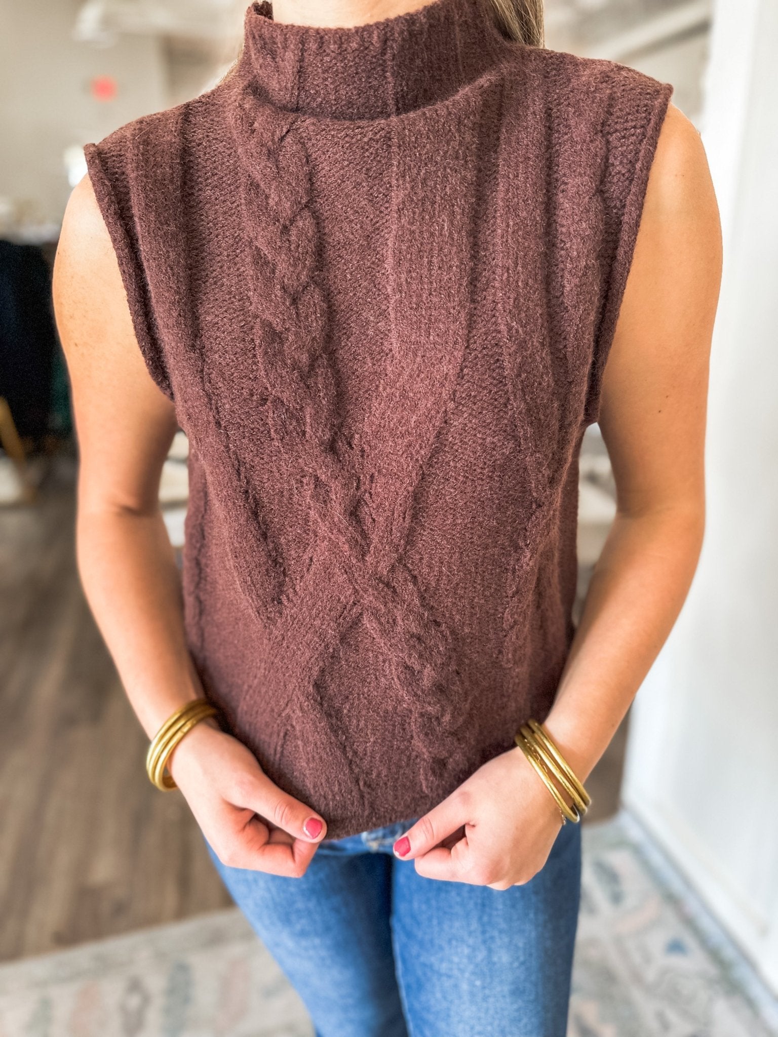 A chic twist on a timeless favorite — this sleeveless cable knit brings all the cozy fall feels while keeping your look elevated. Perfect for layering under blazers or pairing with high-rise denim for a transitional, on-trend outfit.