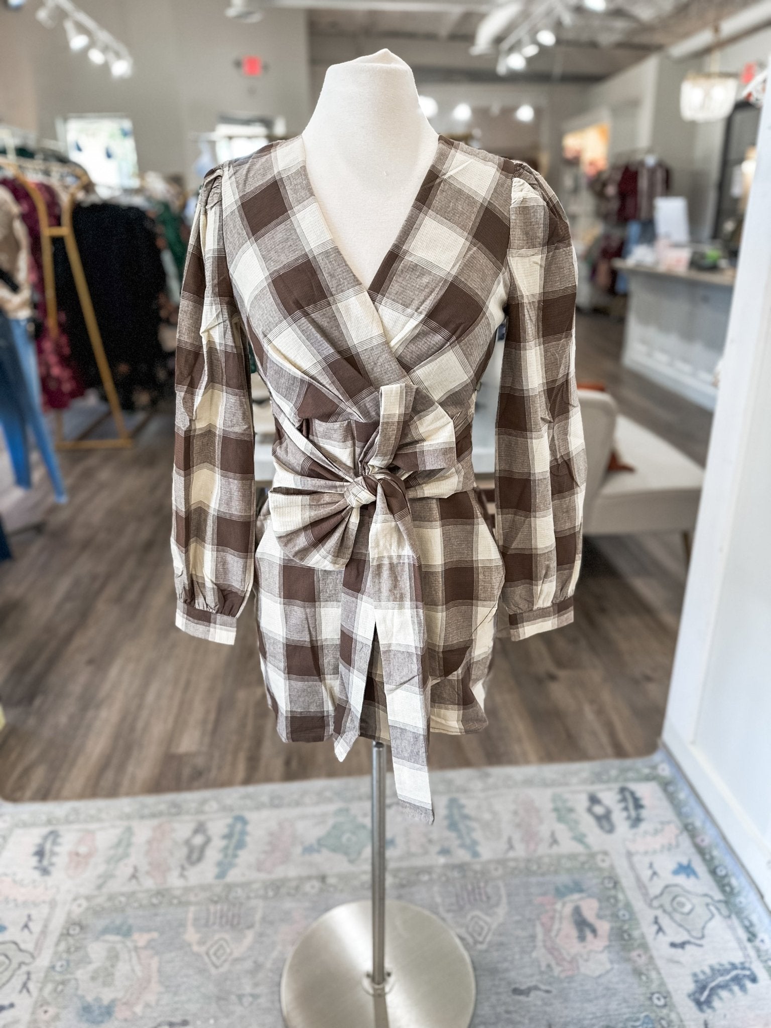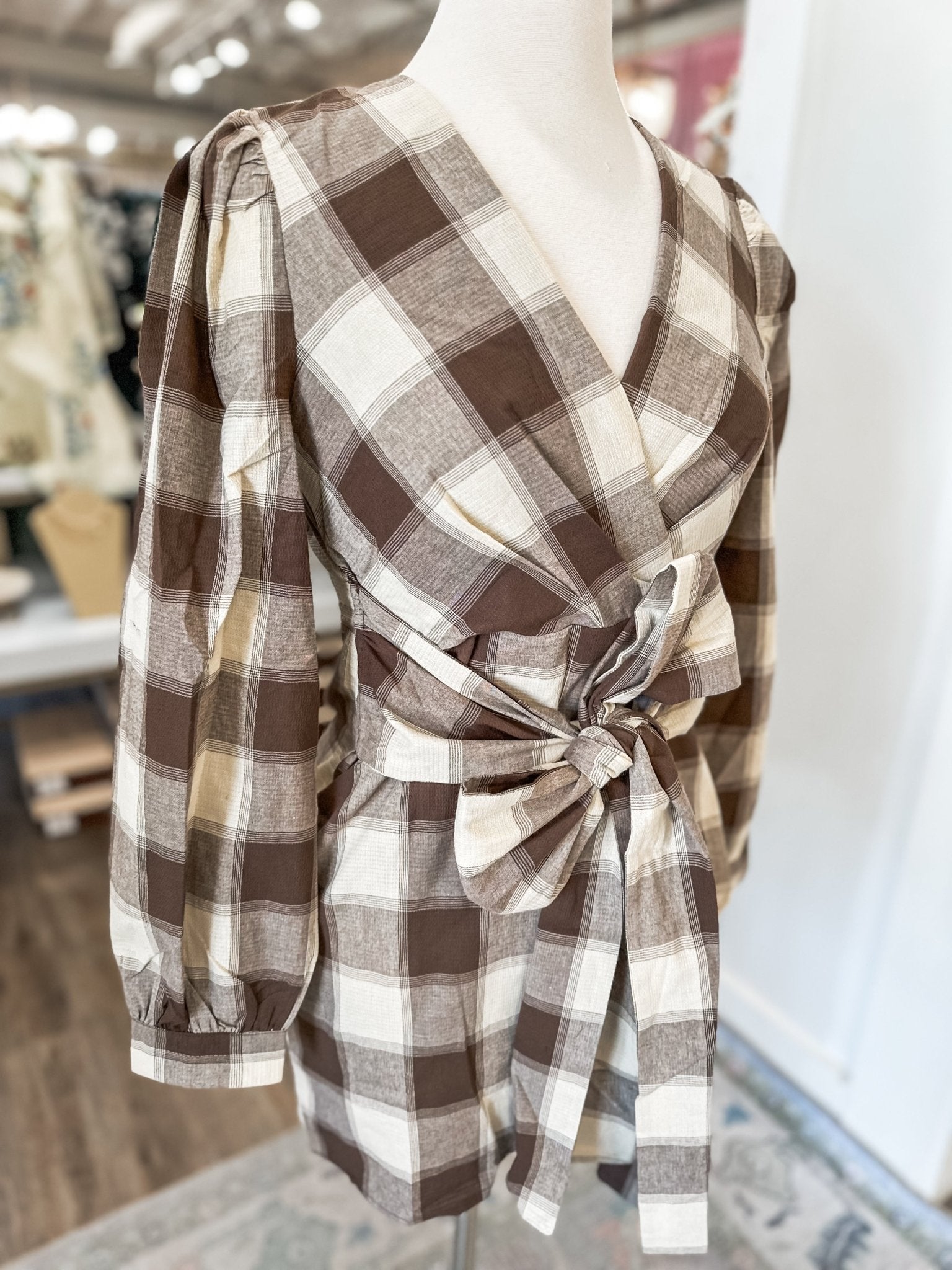 This brown plaid mini dress blends classic fall charm with a flattering modern fit. Whether you’re headed to brunch, family photos, or a fall festival, this style is effortlessly put-together and oh-so flattering.