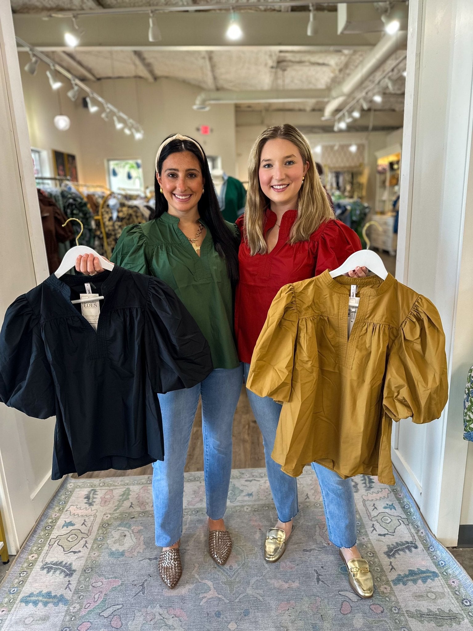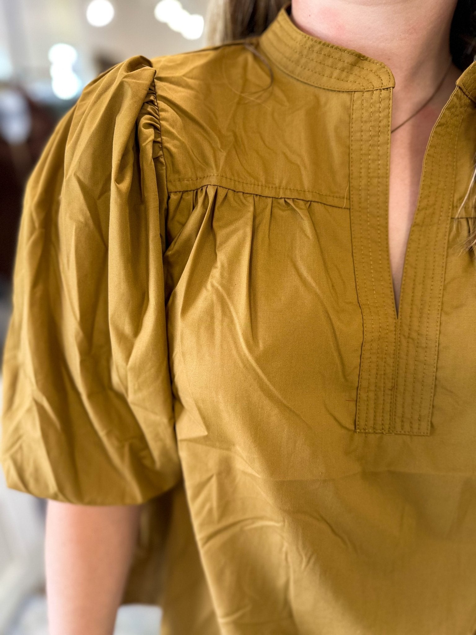 An elevated everyday blouse with just the right mix of polish and ease. Designed with a structured standing collar and short puff sleeves, this poplin top gives you a timeless look that can be styled for work, weekends, or anything in between.