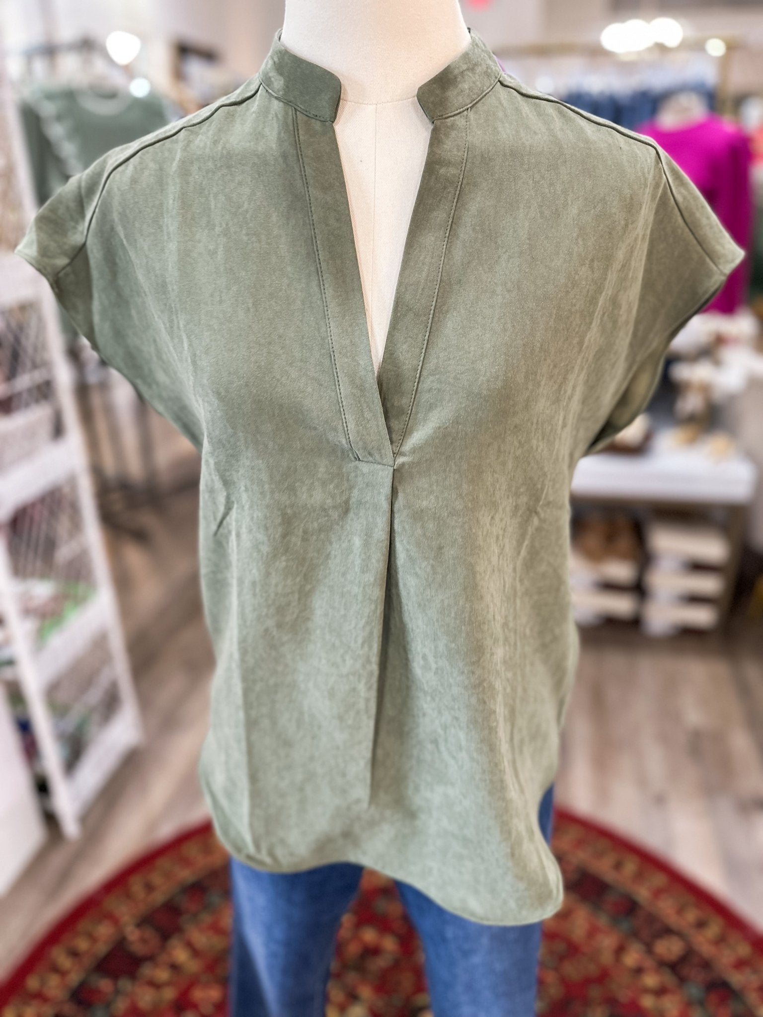 DOORBUSTER: Deep Olive Soft Matte Drop Shoulder Blouse
