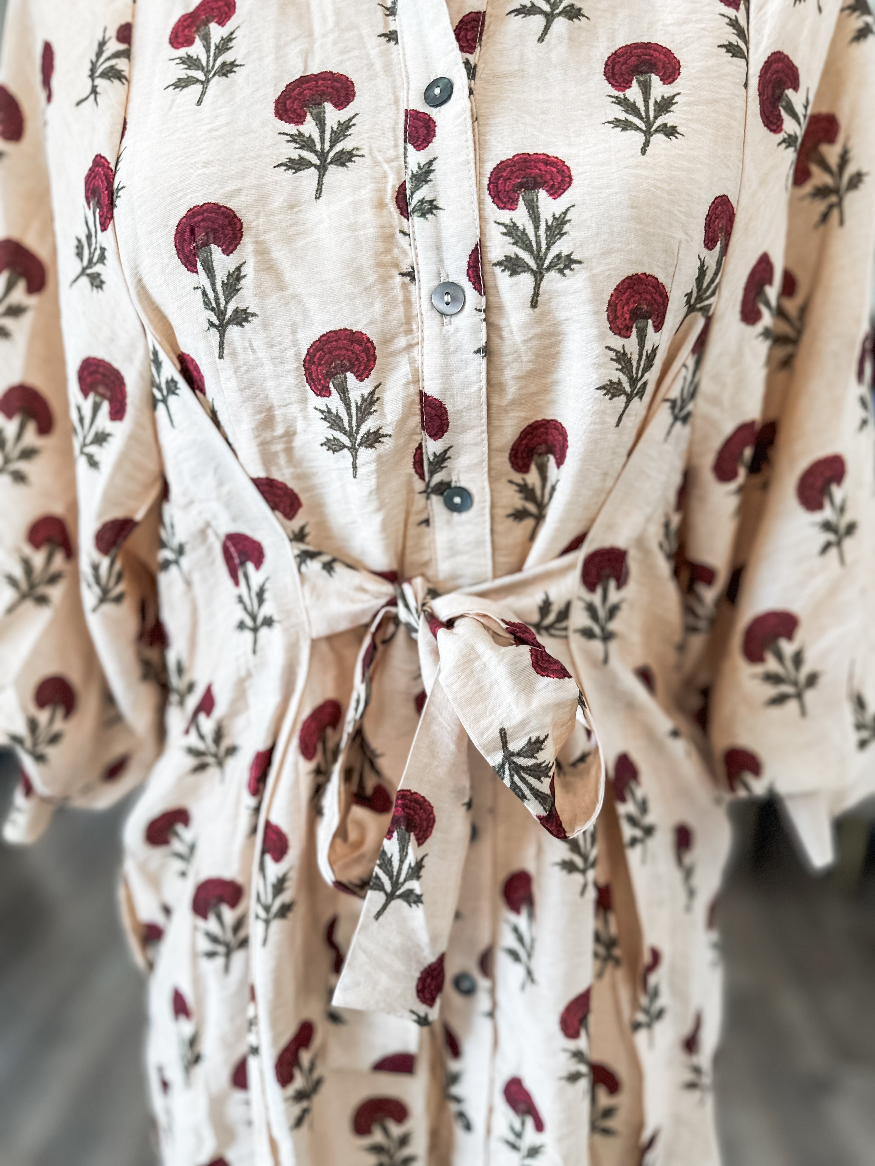 Soft, feminine, and perfectly detailed — this floral mini dress is made for effortless days that still feel polished. The neutral ecru tone and subtle blooms make it ideal for brunch, showers, or easy weekend wear.