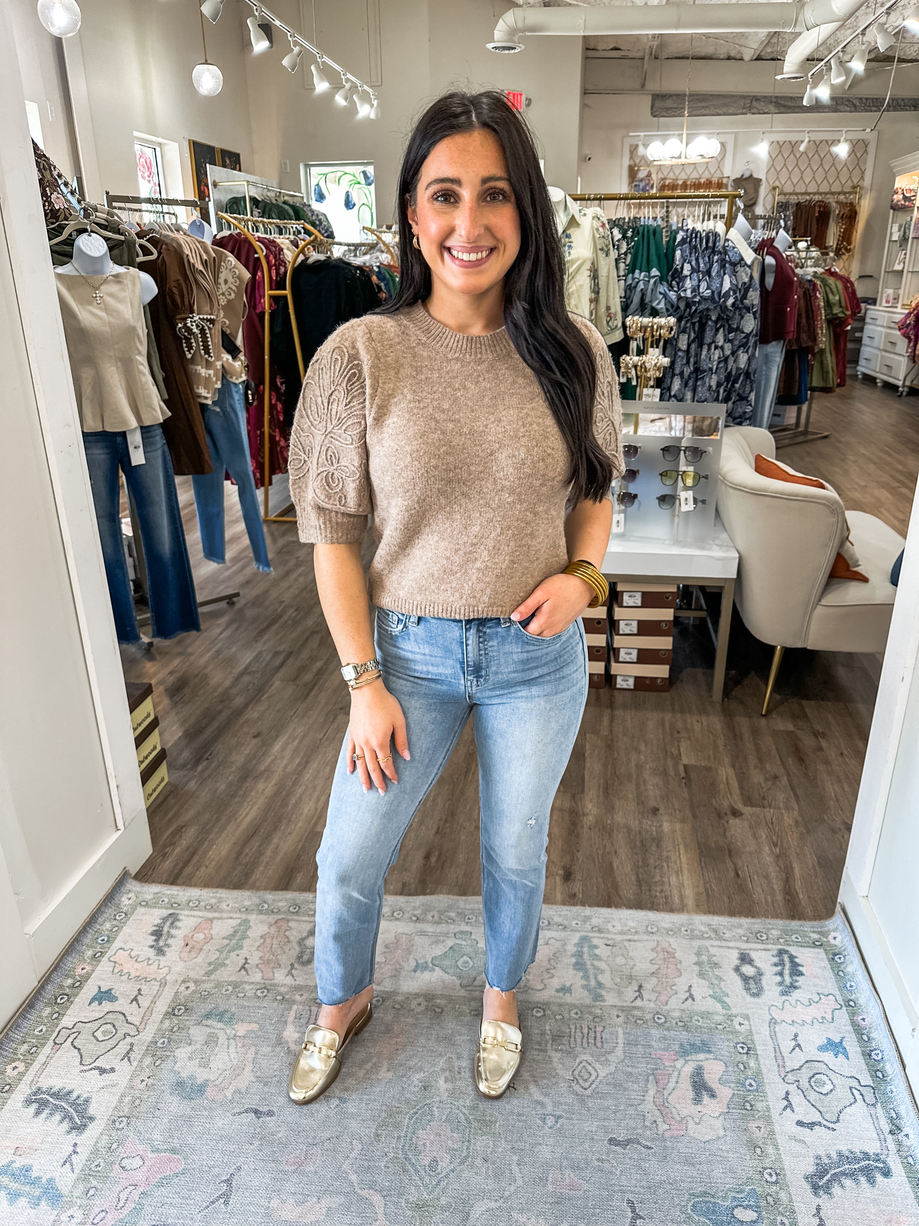 A cozy-chic staple for the season, this sweater blends comfort with timeless details. Perfect for casual days, coffee runs, or pairing with denim and skirts for an elevated look.