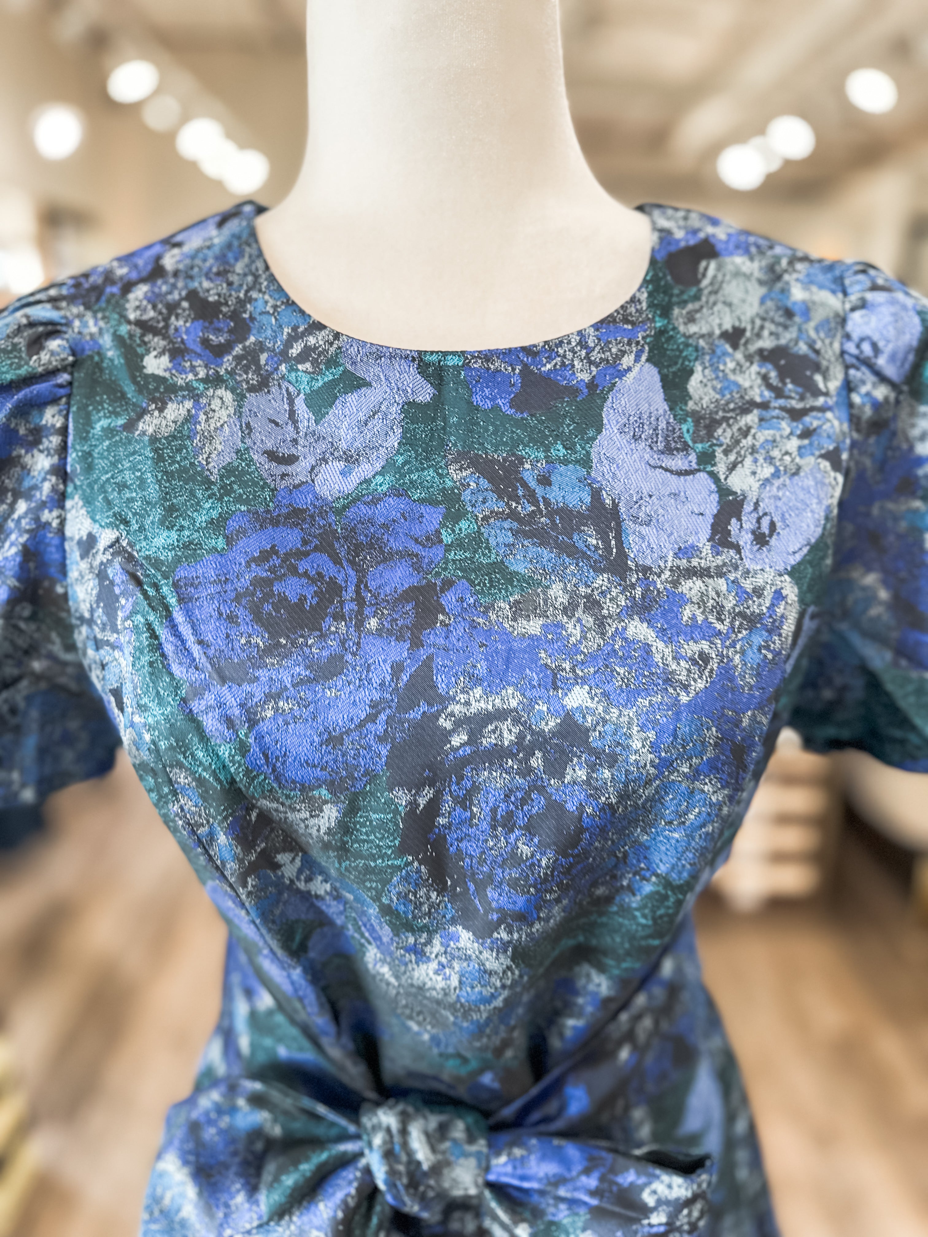 A dreamy mix of shimmer and sophistication — this jacquard mini dress captures the glow of moonlit evenings with its rich tones and flattering silhouette. Perfect for weddings, holiday dinners, or nights out when you want to shine.