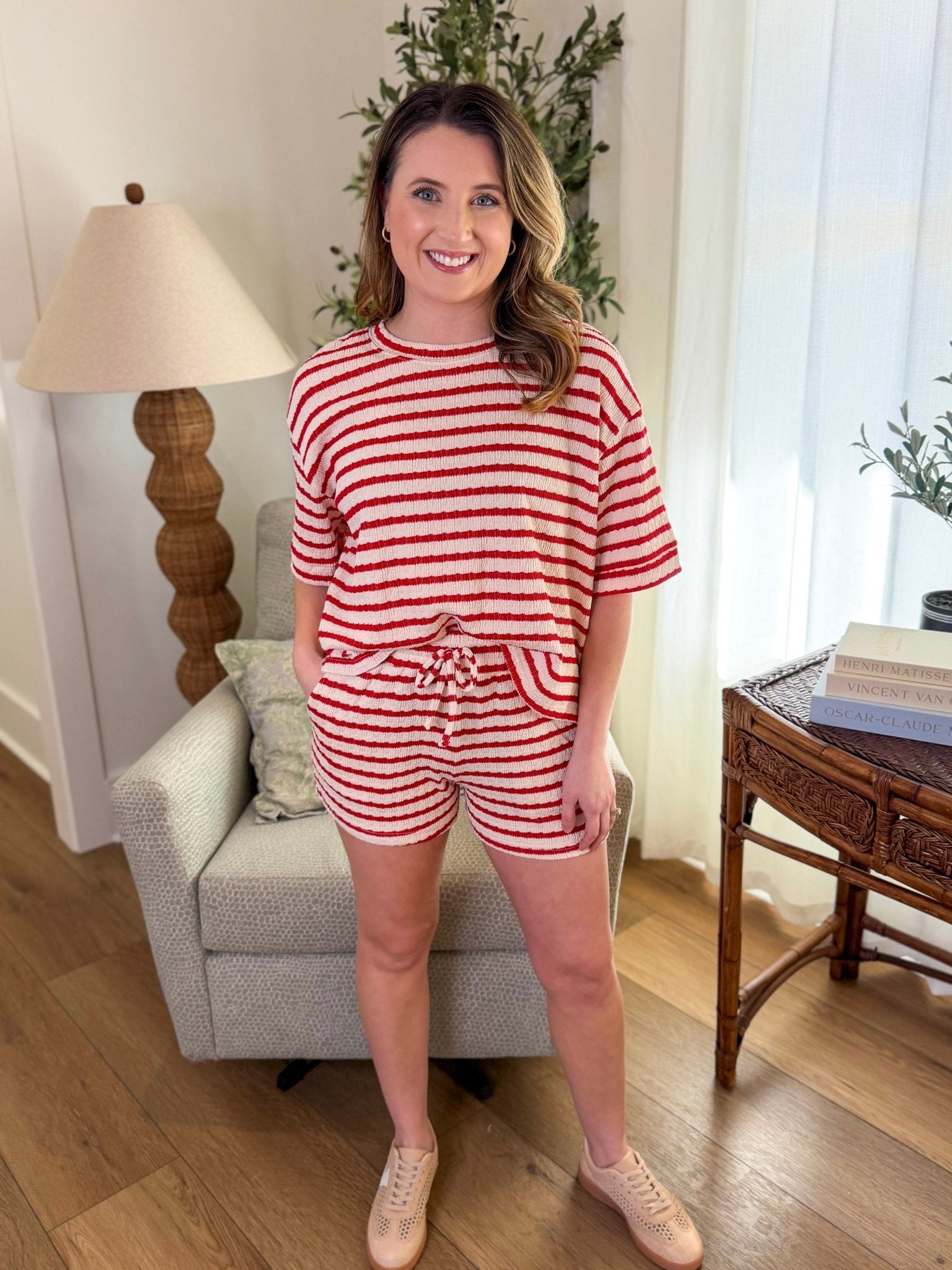 The Ruby Striped Short Sleeve Tee & Shorts Set is the definition of easy, everyday comfort with a polished touch. Featuring classic stripes and a relaxed silhouette, this matching set is perfect for days when you want to look put together without overthinking it.