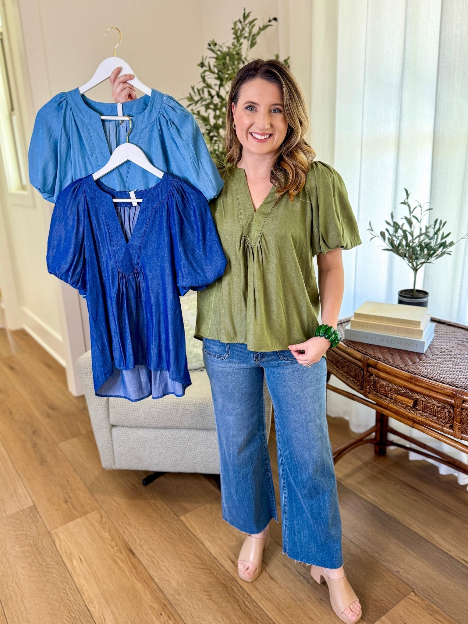 The Sage Easy Breeze Balloon Sleeve Top is effortless, airy, and endlessly wearable. Designed with a relaxed silhouette and soft drape, this top brings an easy polish to everyday outfits while still feeling light and comfortable. The breezy fabric and flattering shape make it a go-to for warm days, casual plans, or dressed-up denim moments.