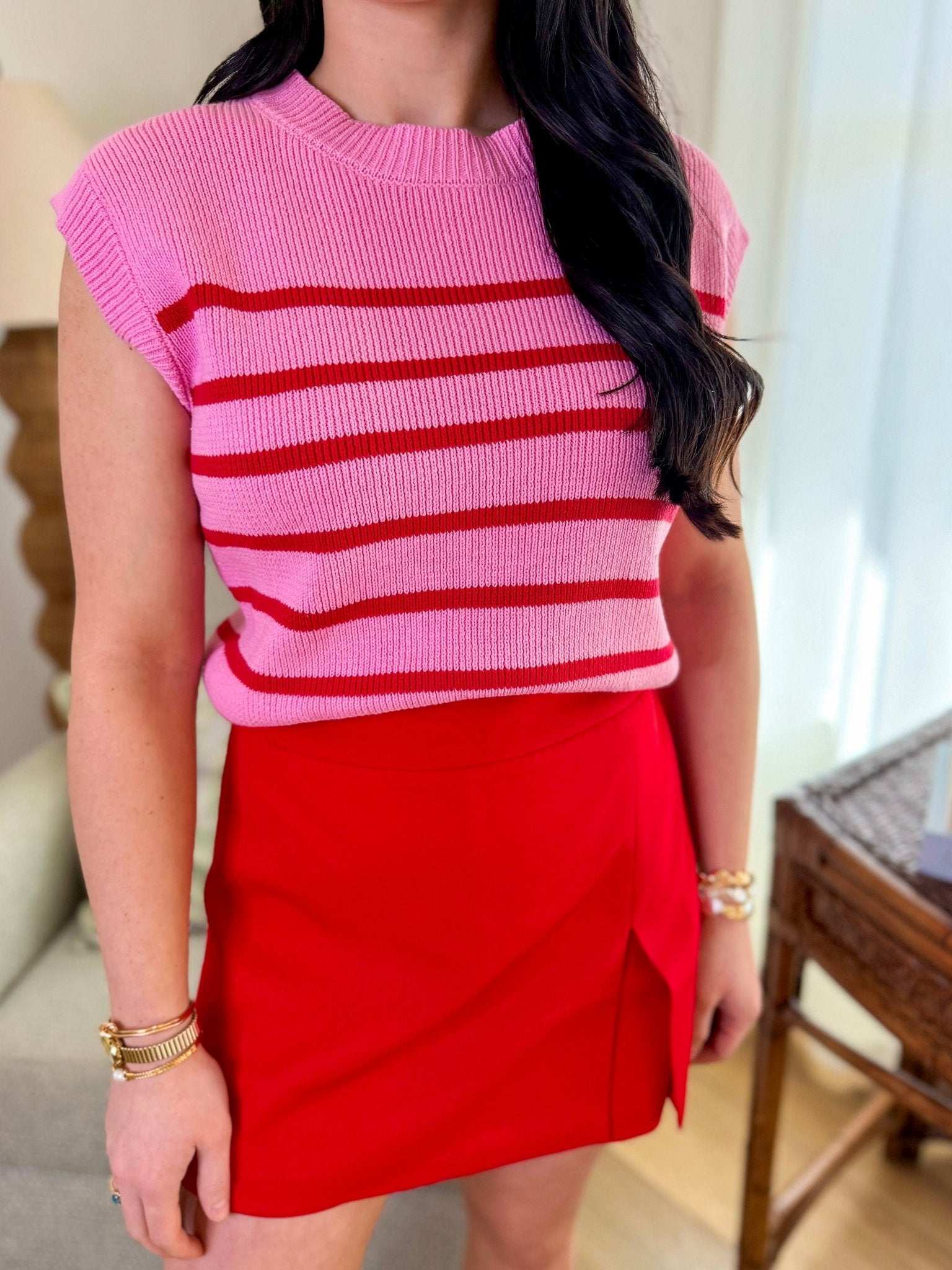 Sweetest Sass Pink/Red Sleeveless Striped Sweater Top