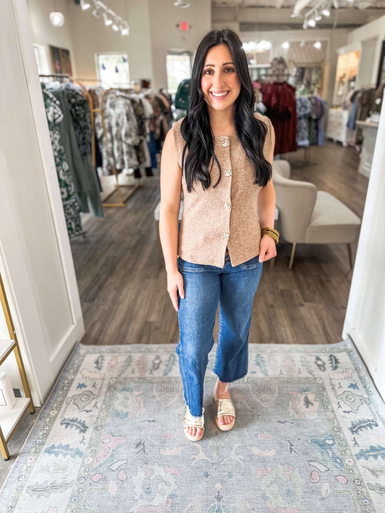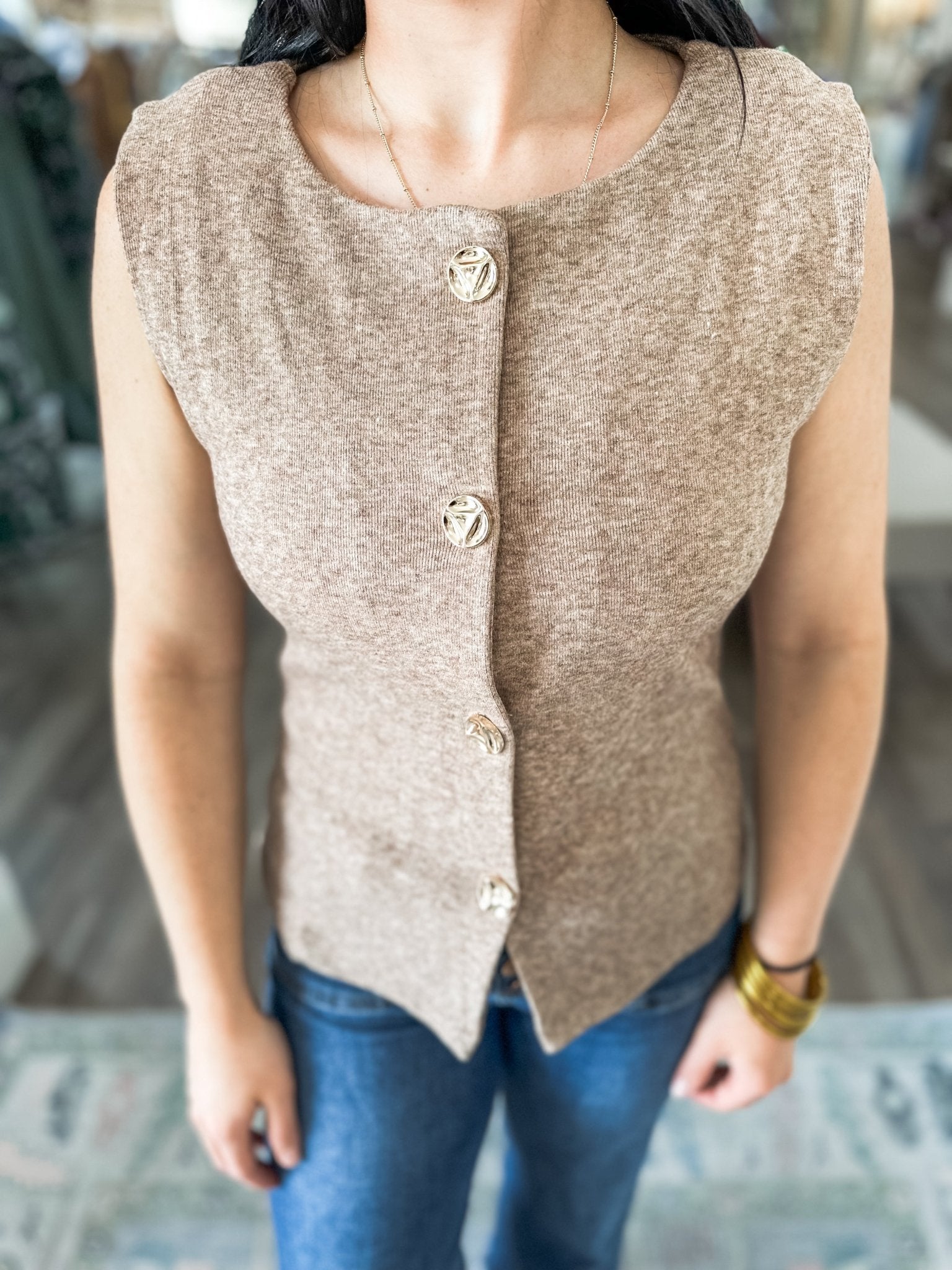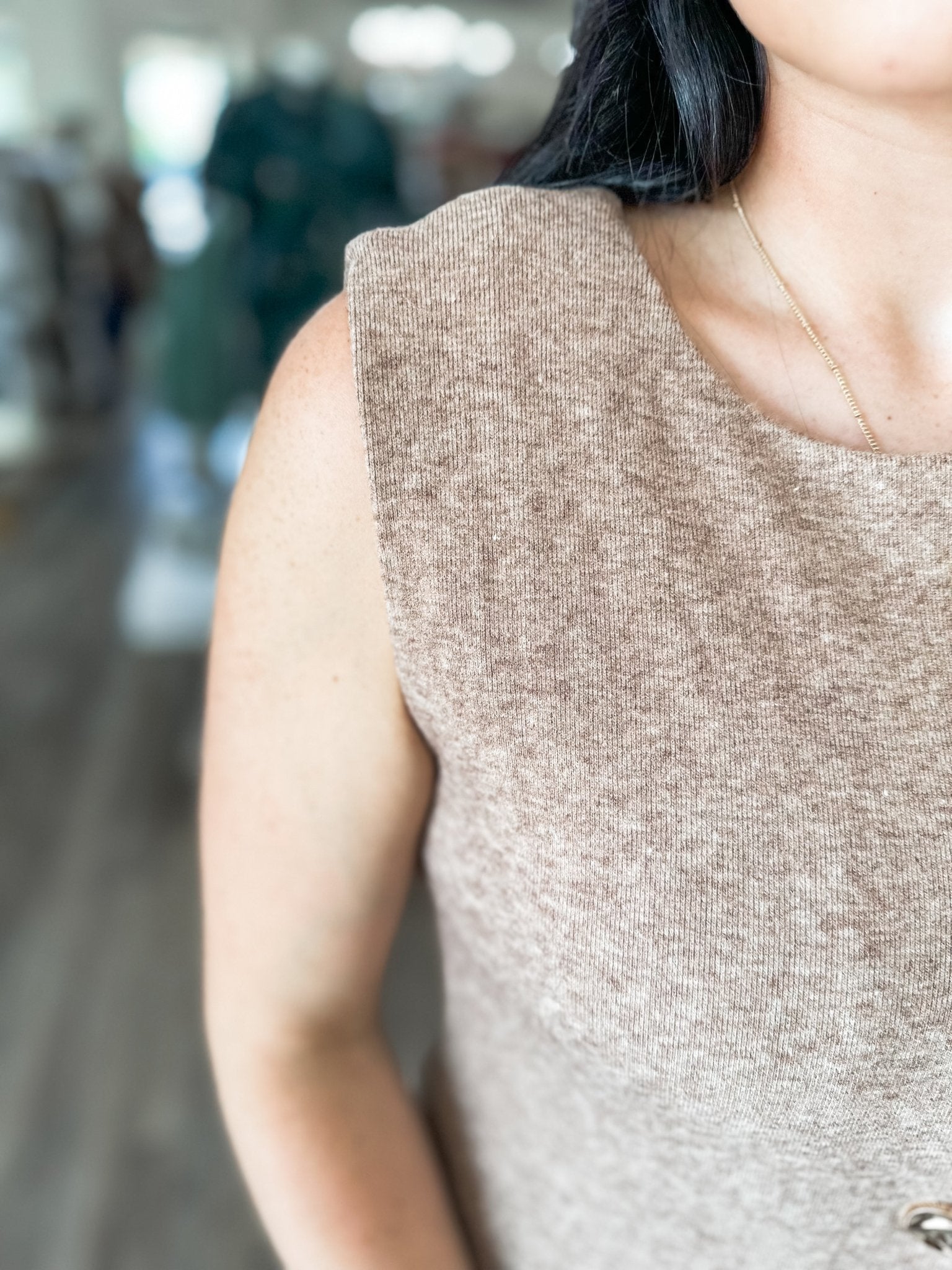 Classic meets chic in this tailored neutral knit — a wardrobe staple with just the right touch of glam.