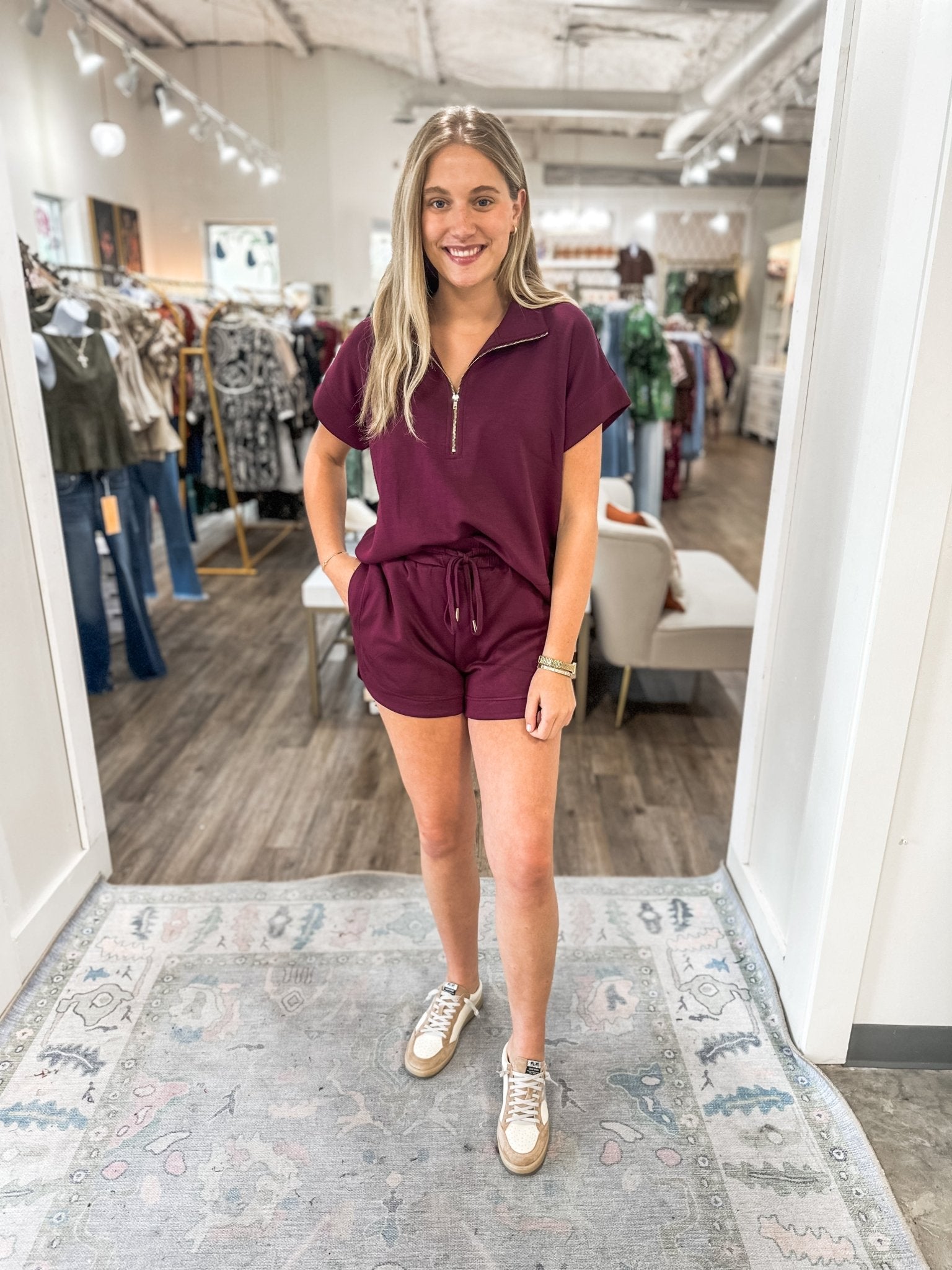 Your weekend uniform just got an upgrade—cozy enough for lounging, chic enough for stepping out. This two-piece set combines comfort with style in a bold burgundy hue.