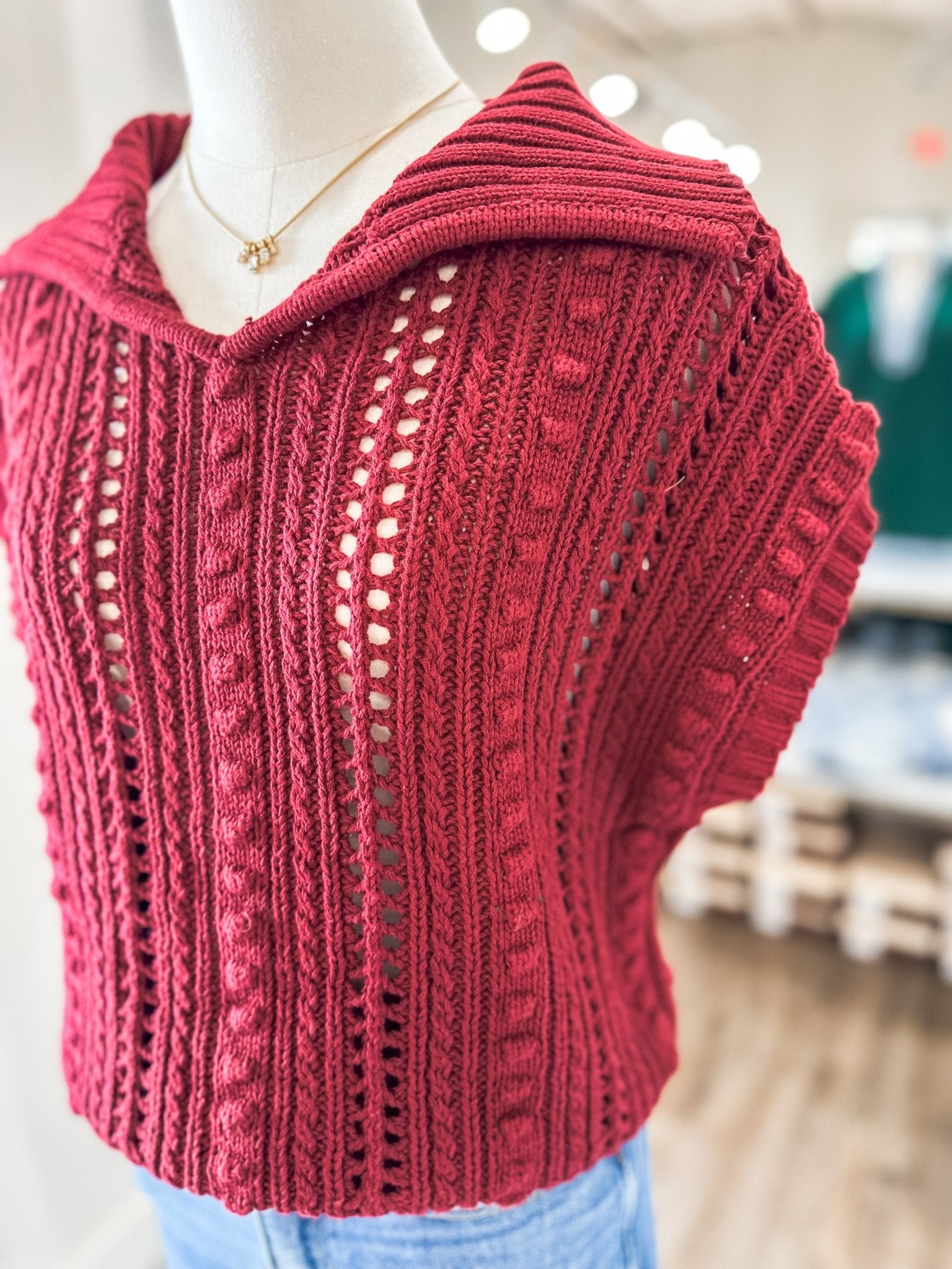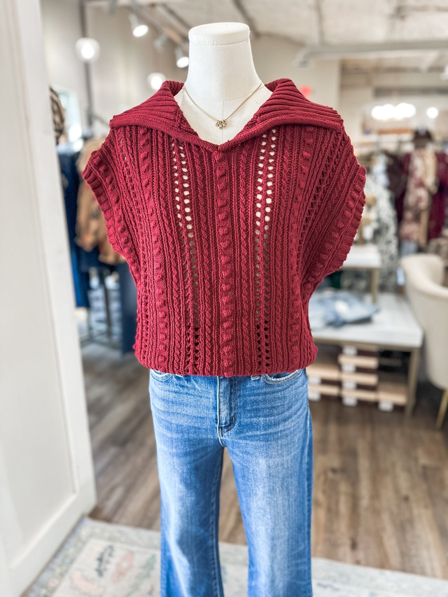 Add a pop of rich, warm color to your everyday wardrobe with the Wine Everyday Neutral Crochet Top. This cozy piece is perfect for layering through the seasons while keeping a casual, chic vibe.