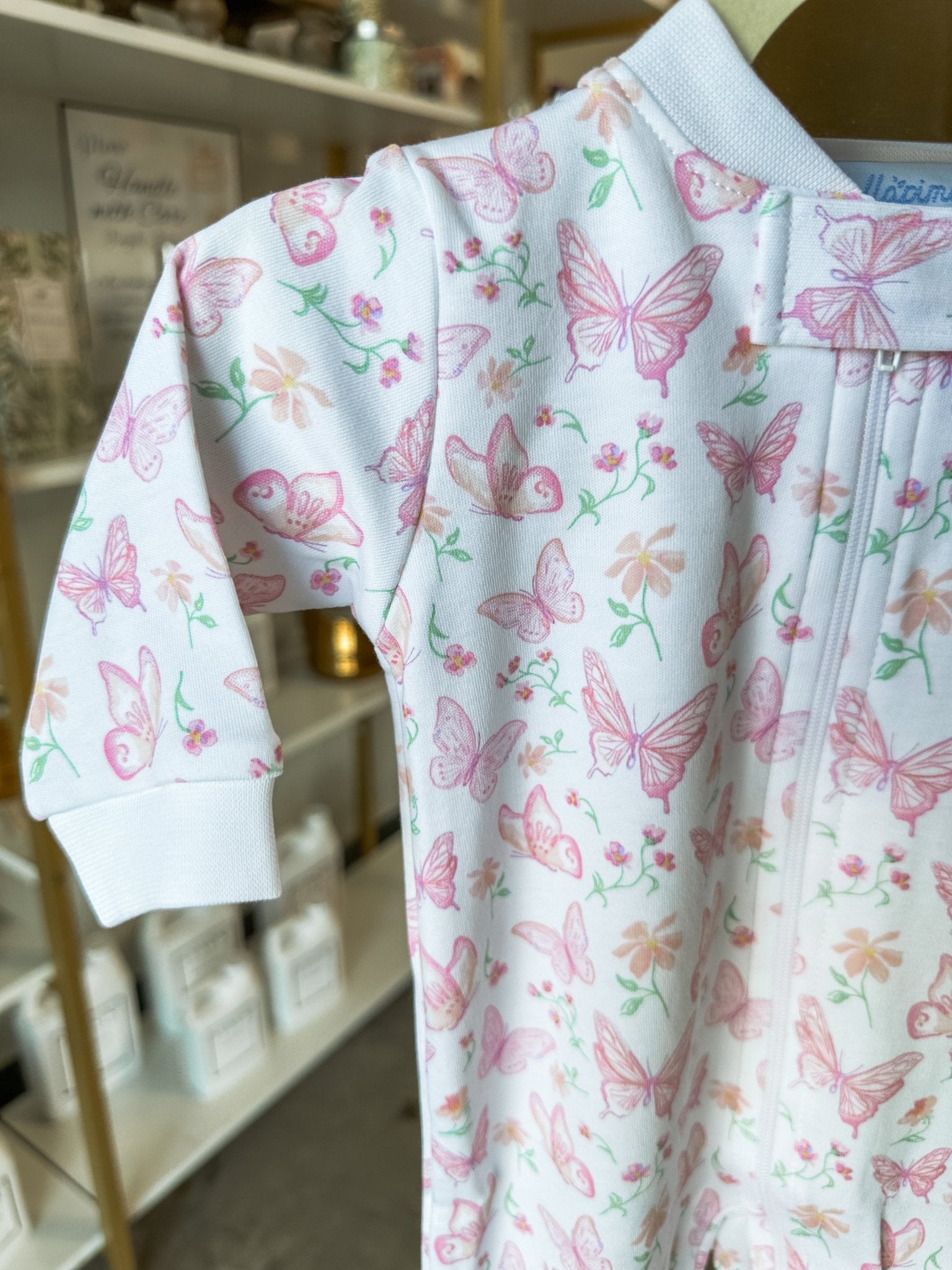 Darling and practical, this butterfly print footie keeps baby cozy while making changes quick and easy. A sweet everyday essential or thoughtful gift.