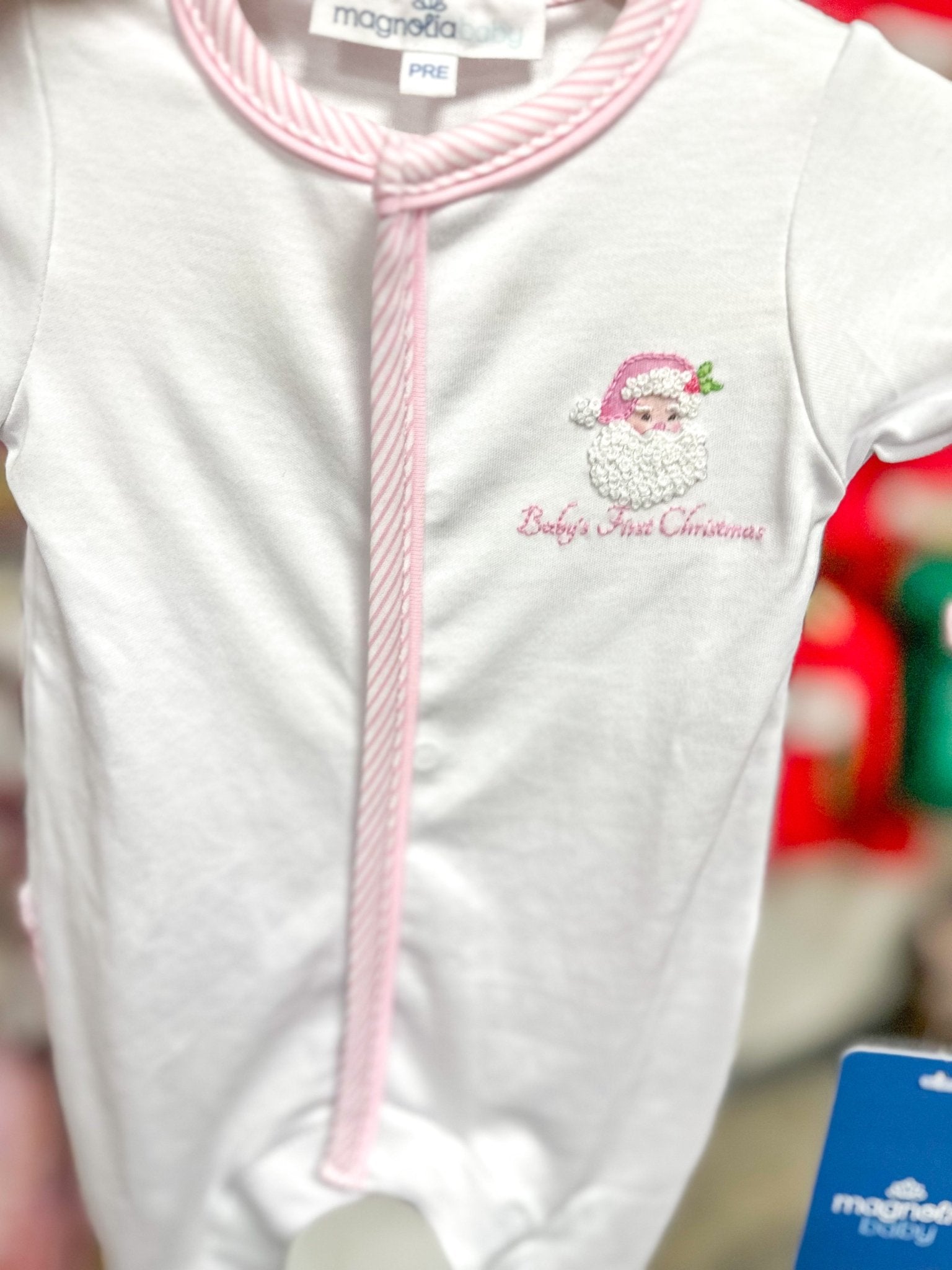 Girls Pink Santa Baby Embroidered Ruffle Footie