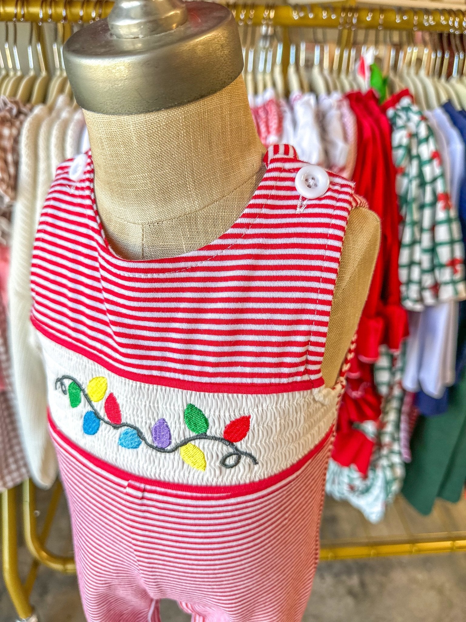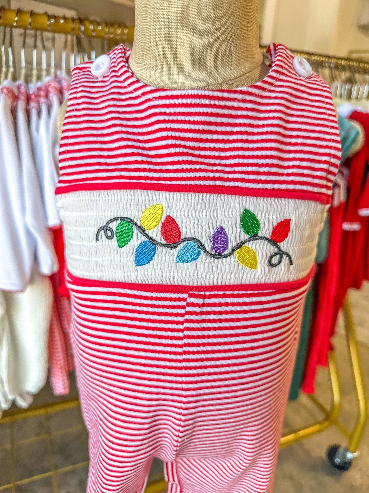 Featuring bright embroidered Christmas lights across a red and white striped body, it’s the perfect mix of festive fun and timeless Southern charm.