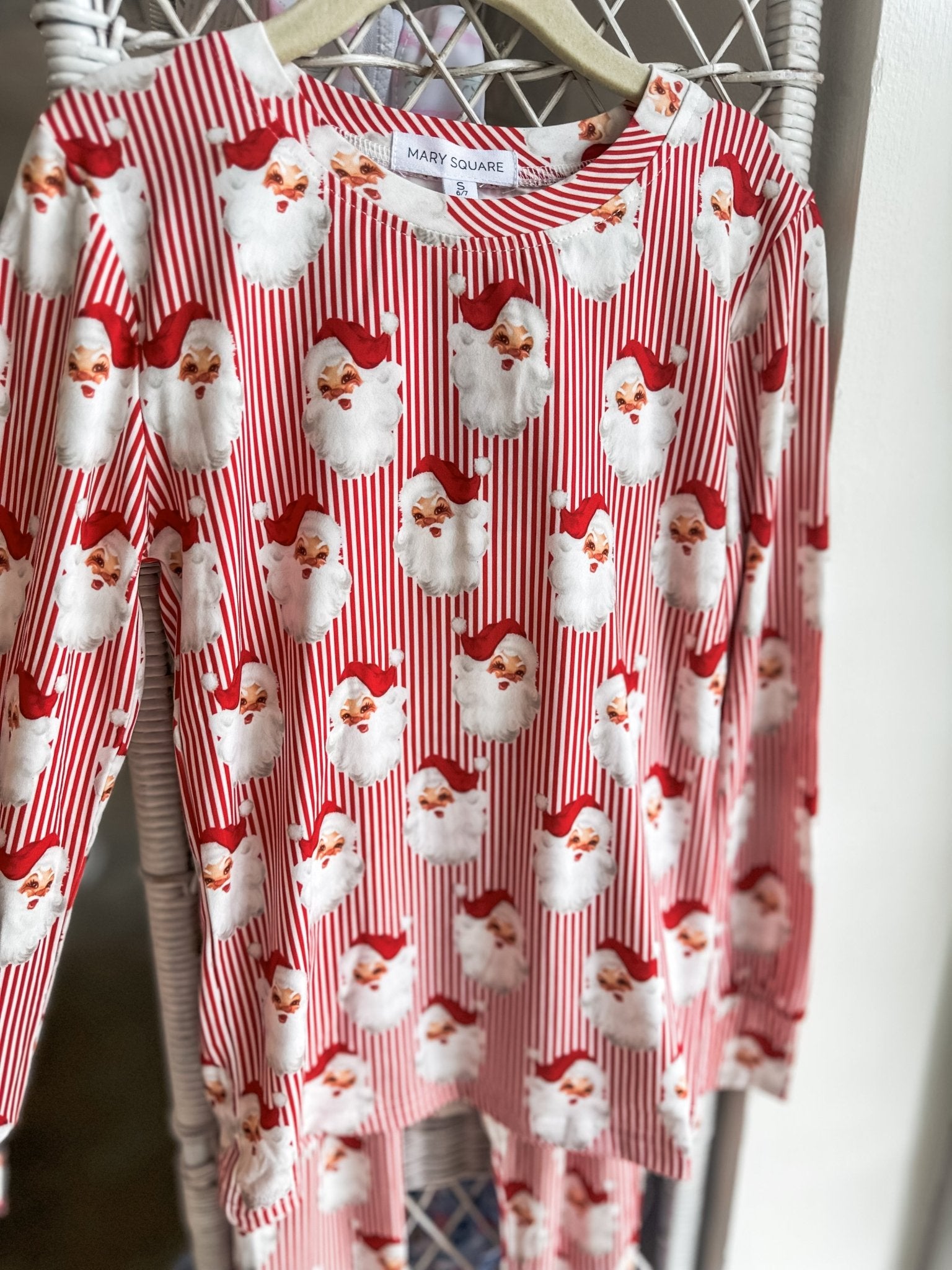 - Vintage red stripe + Santa print design
