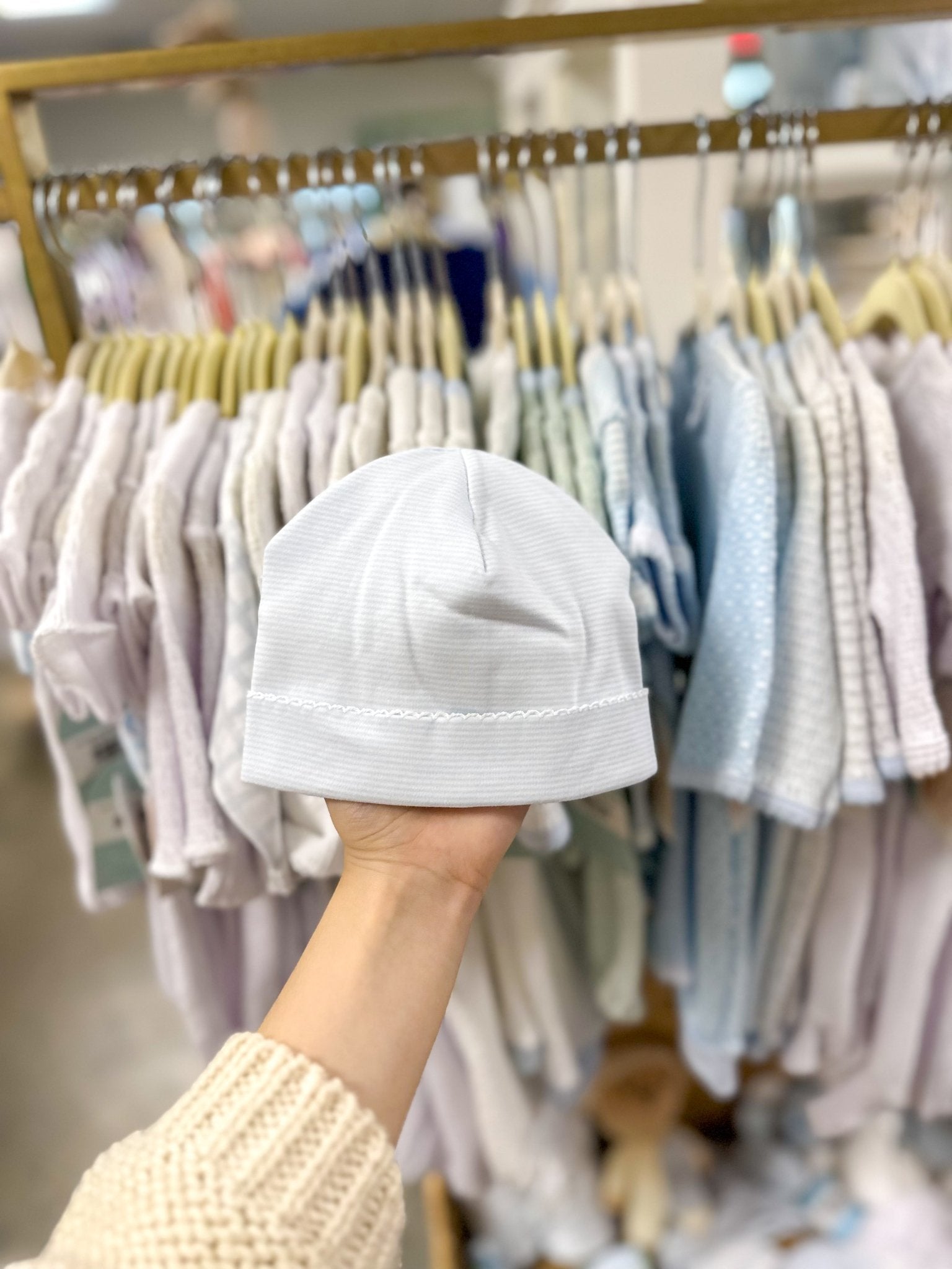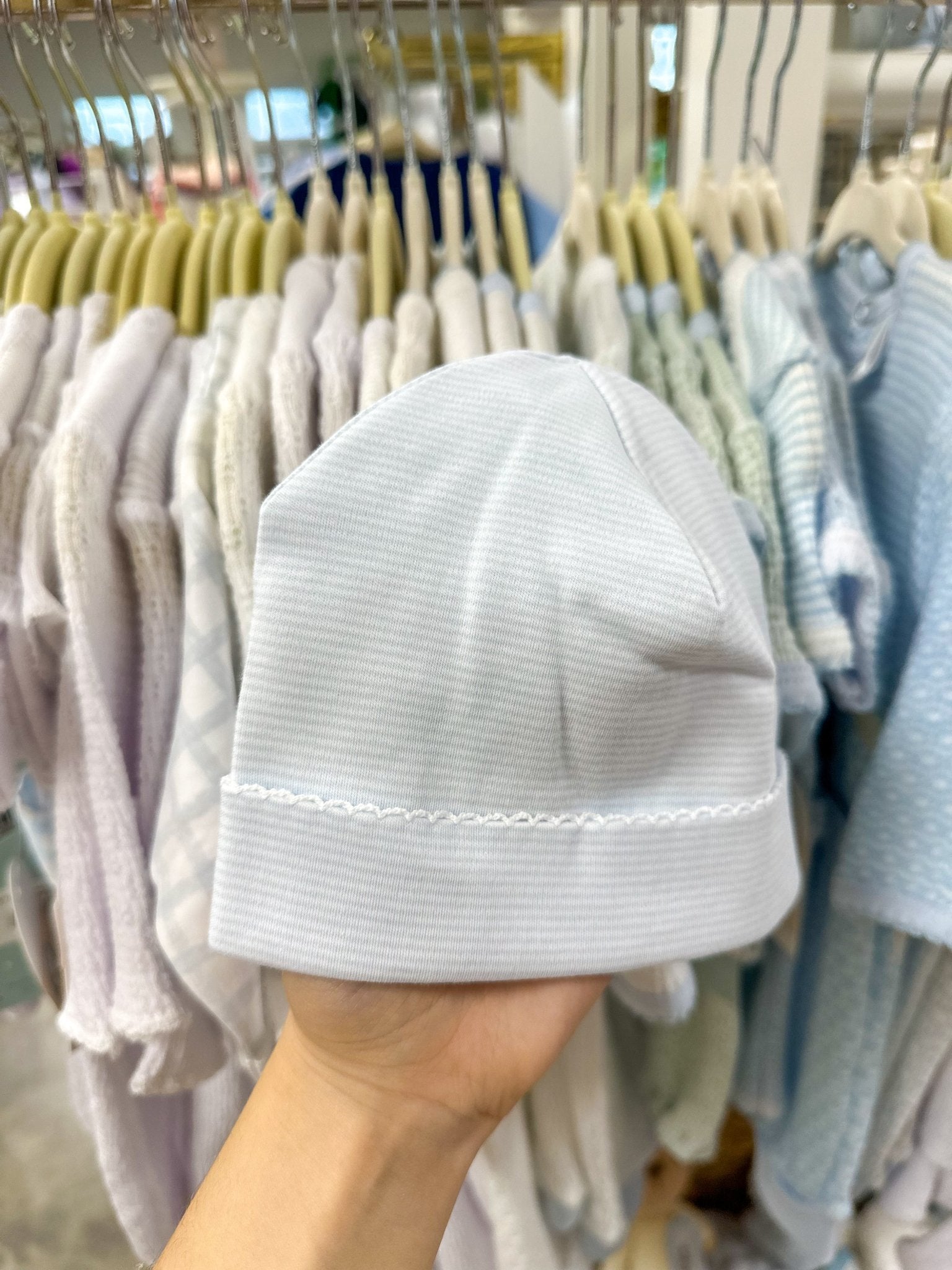Paty Blue Pinstripes Beanie W/ White Lace Trim