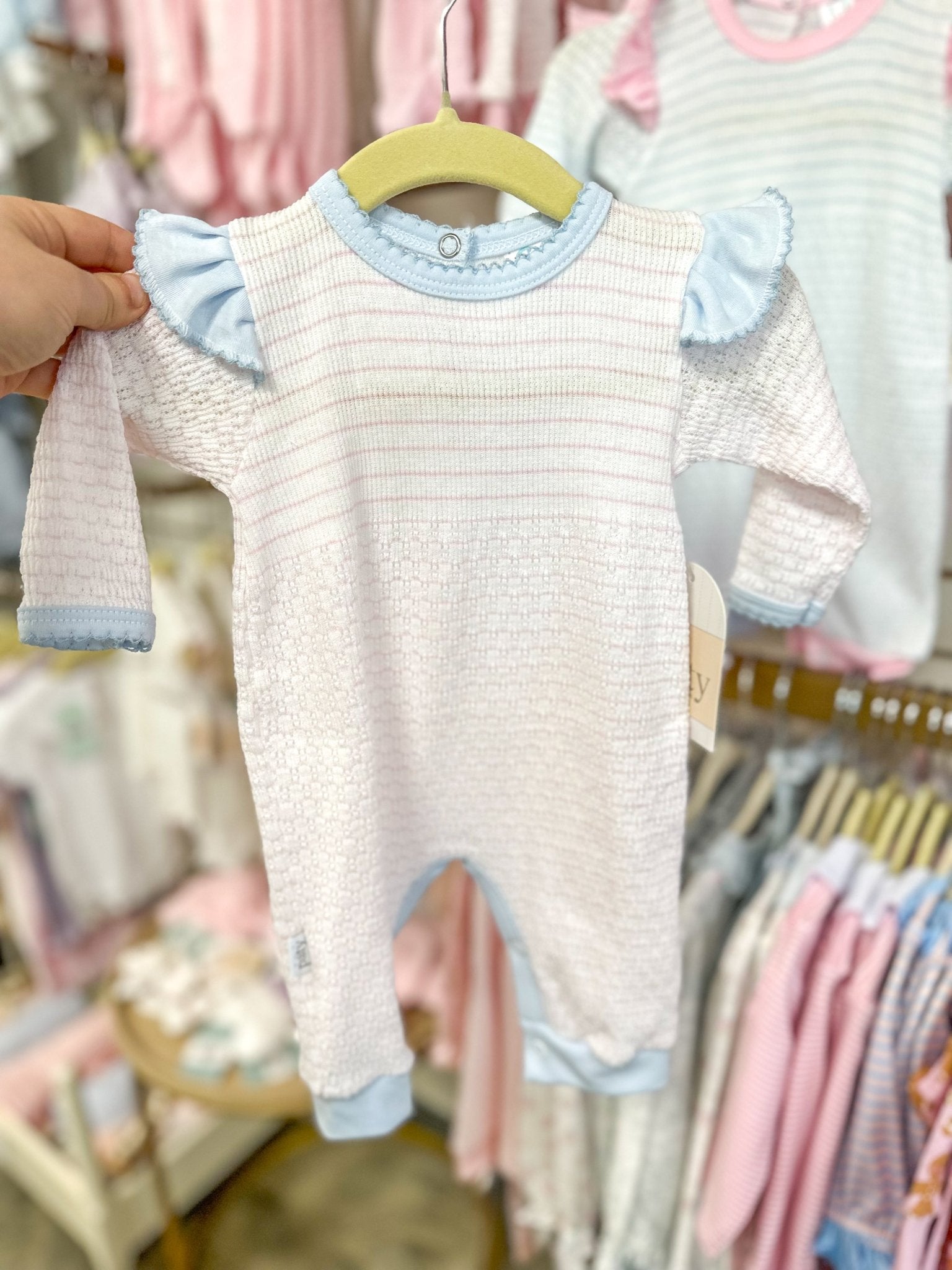 Paty Pal Pink w/ Blue Trim Pinstripe Angel Sleeve Romper