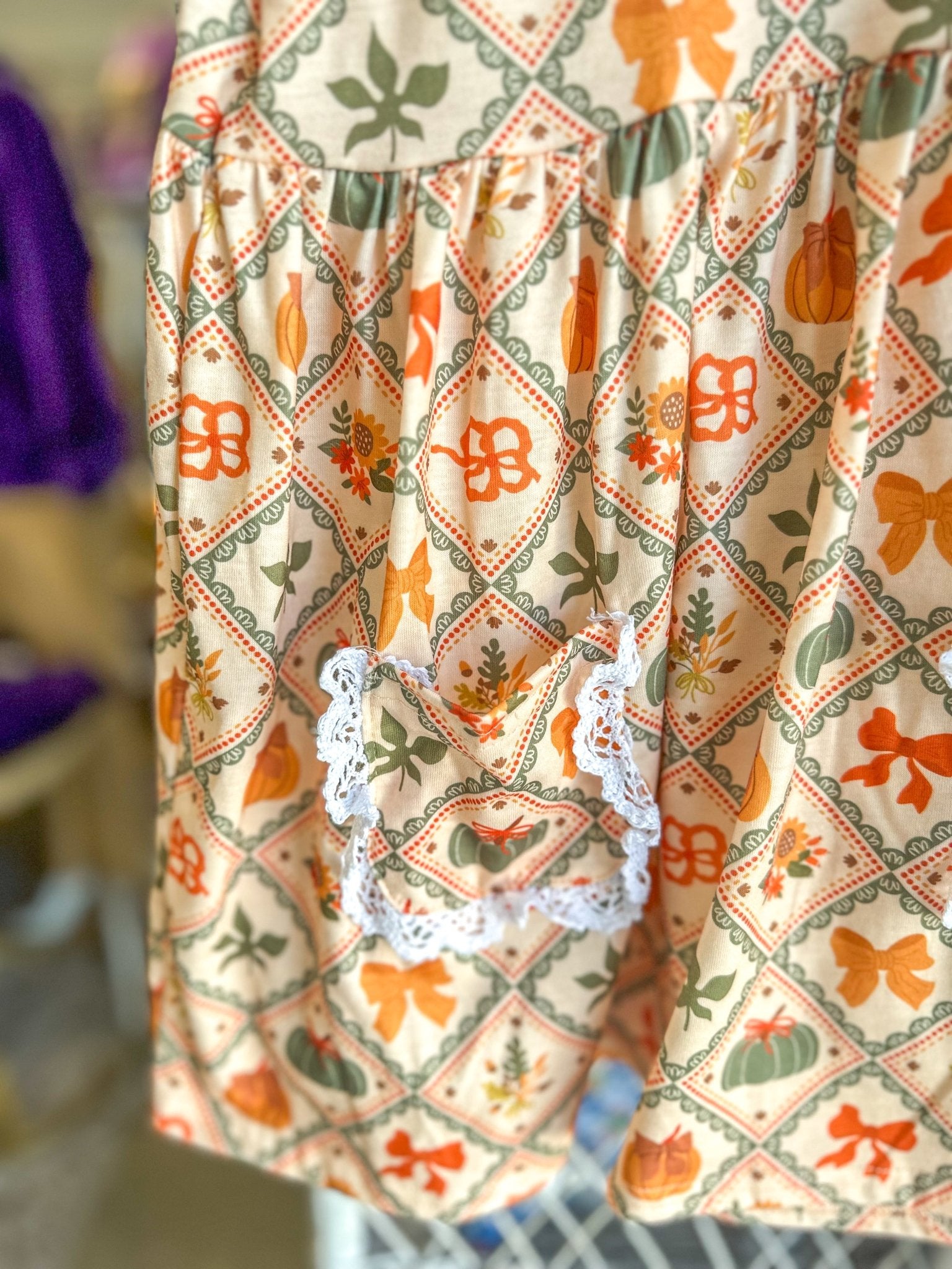 A little vintage, a lot of charm! This pumpkin bow print dress is a darling pick for fall festivities, family photos, and Thanksgiving dinner.