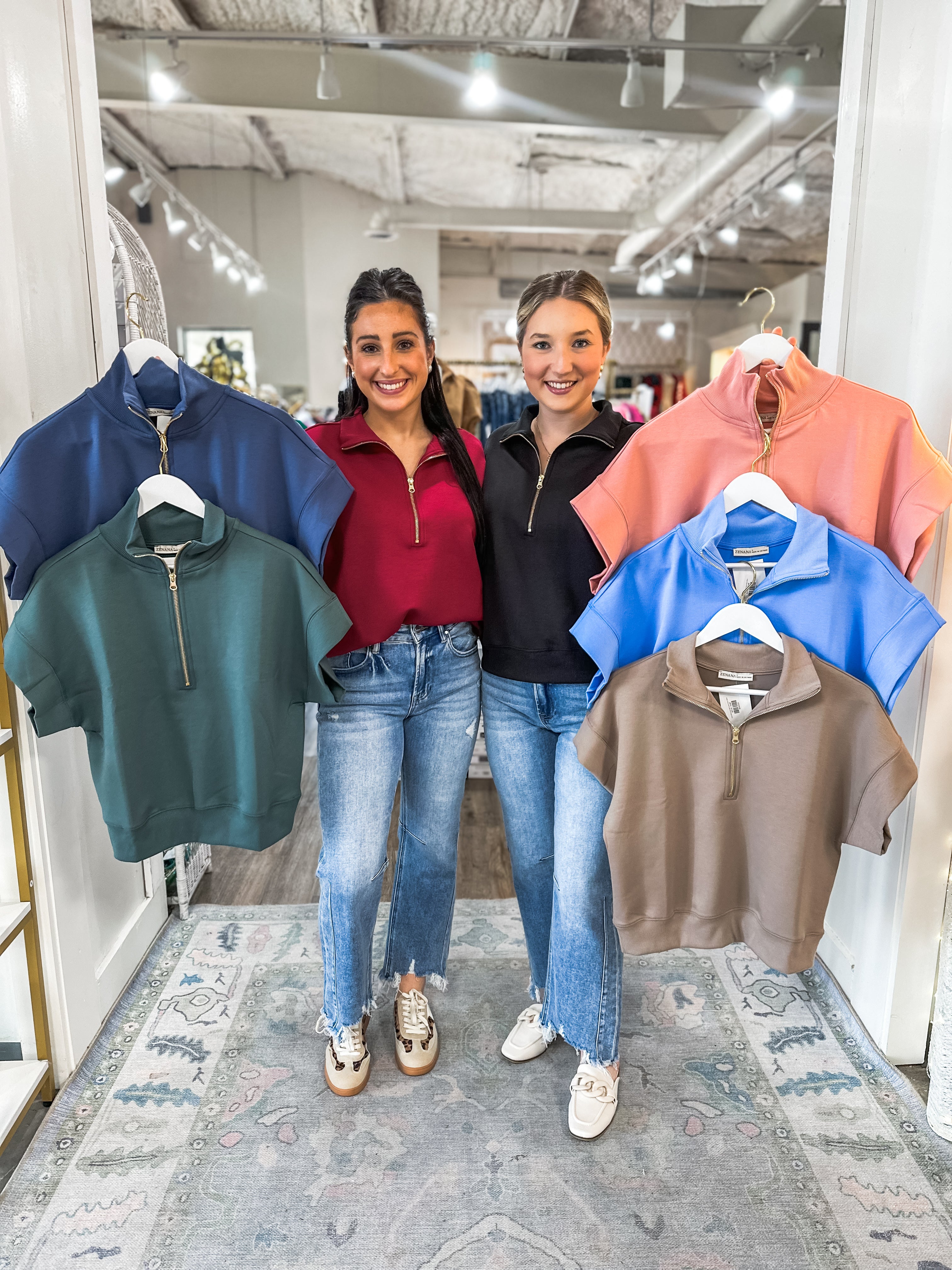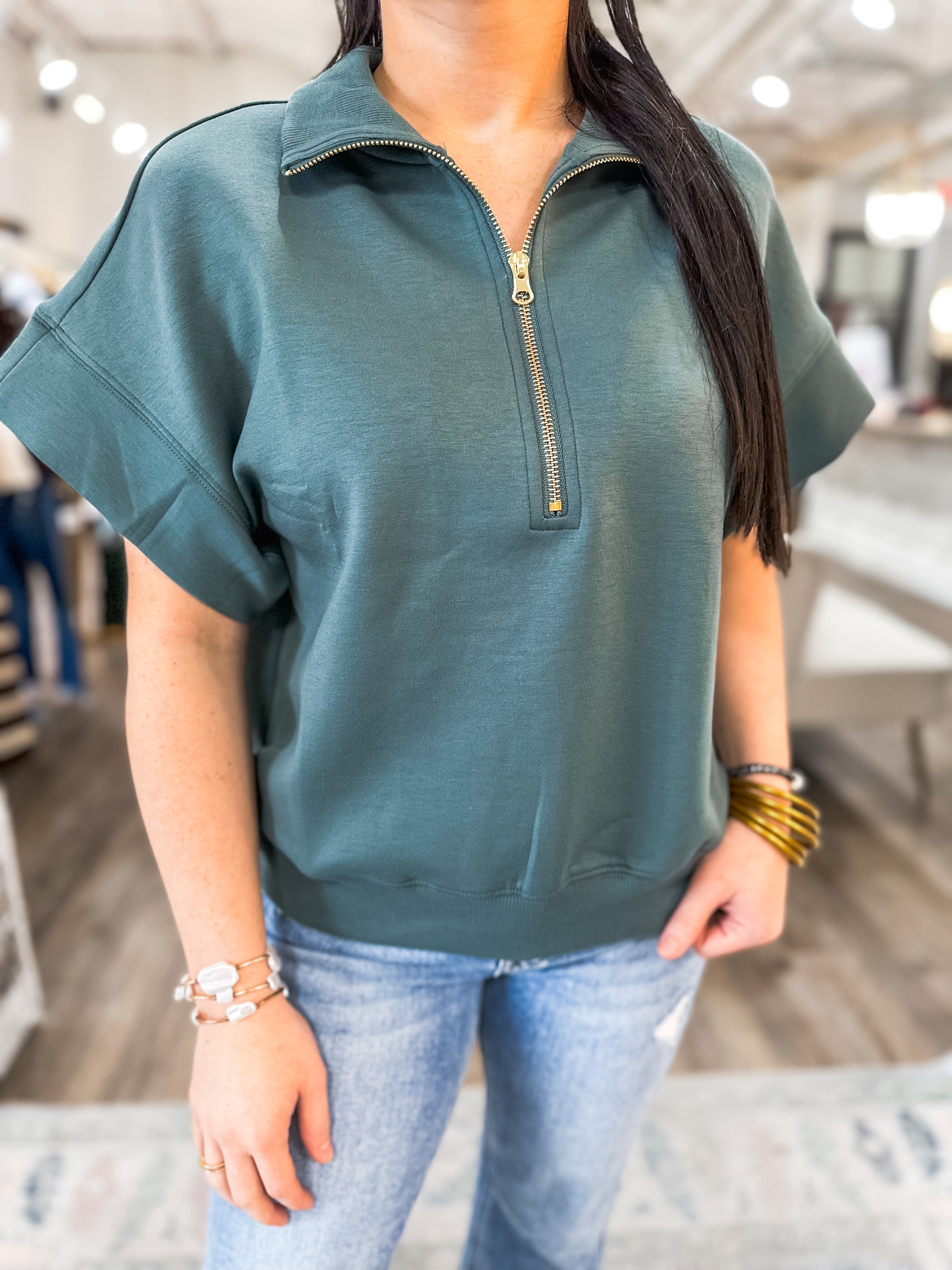 DOORBUSTER: Ash Jade Polish Scuba Half Zip Short Sleeve Pullover