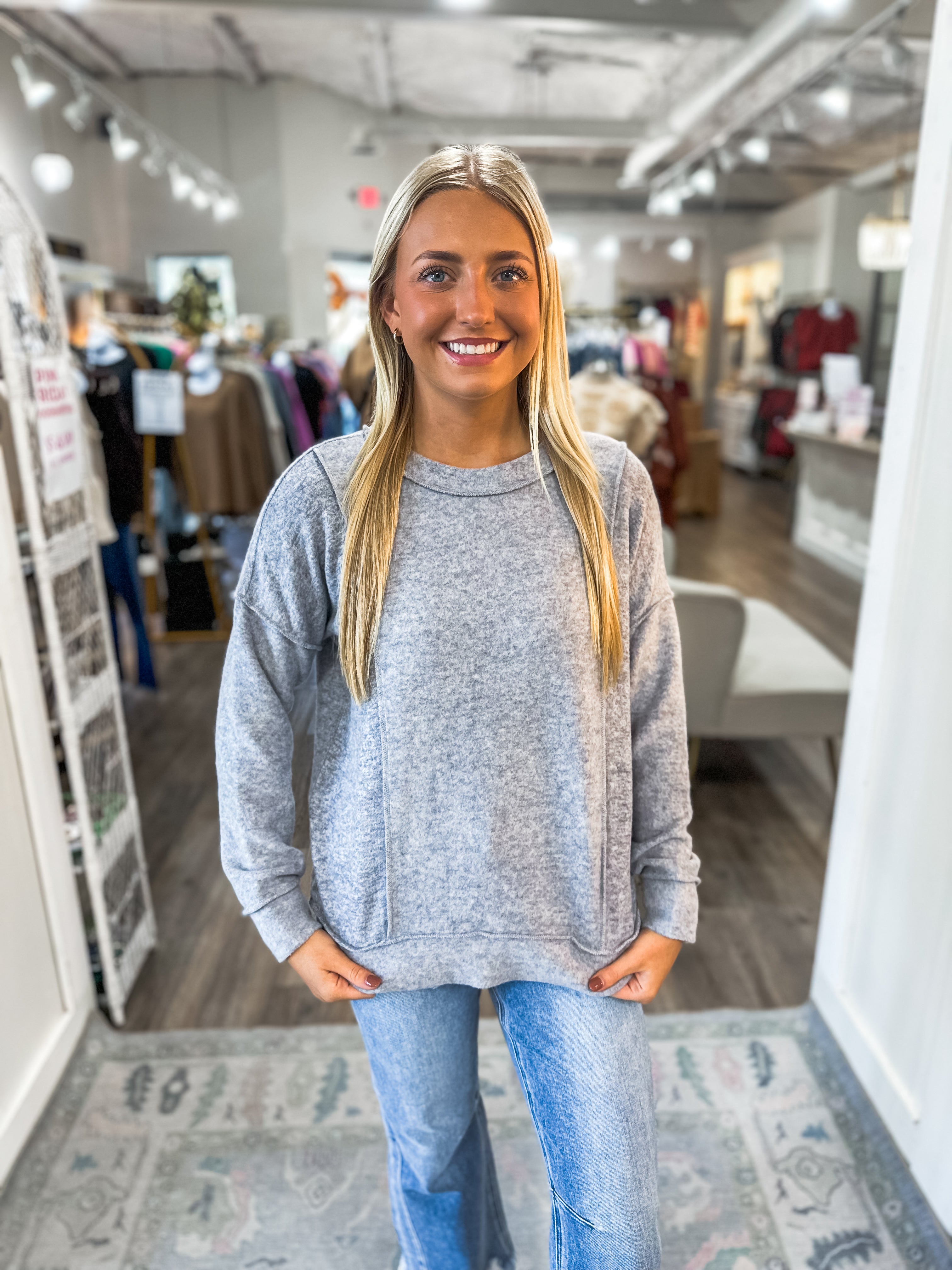 Meet your new “wear on repeat” pullover. Brushed, buttery soft, and designed with those easygoing seams that give it that lived-in look you love.