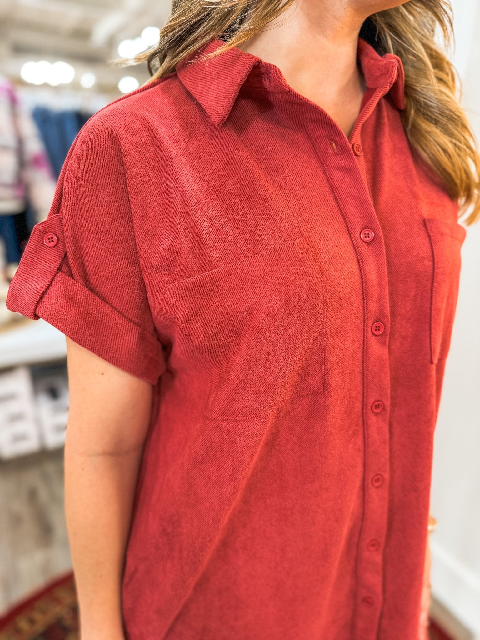 An easy, elevated shirt dress that blends cozy texture with a timeless silhouette. Perfect for fall days, casual dinners, or styled with boots for an effortlessly chic seasonal look.