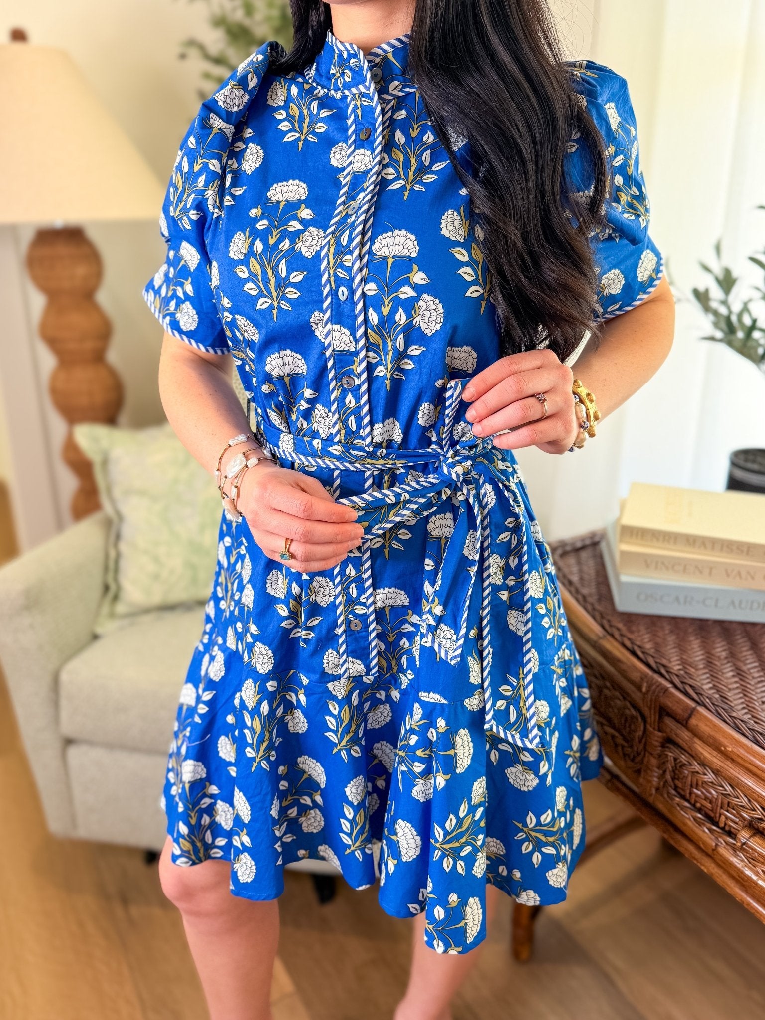 Bright, feminine, and full of charm — The Blue Flower Market Mini Dress is the statement piece your closet has been waiting for. The bold floral print paired with its flattering tie waist and playful silhouette makes it perfect for any occasion that calls for a little extra confidence.
