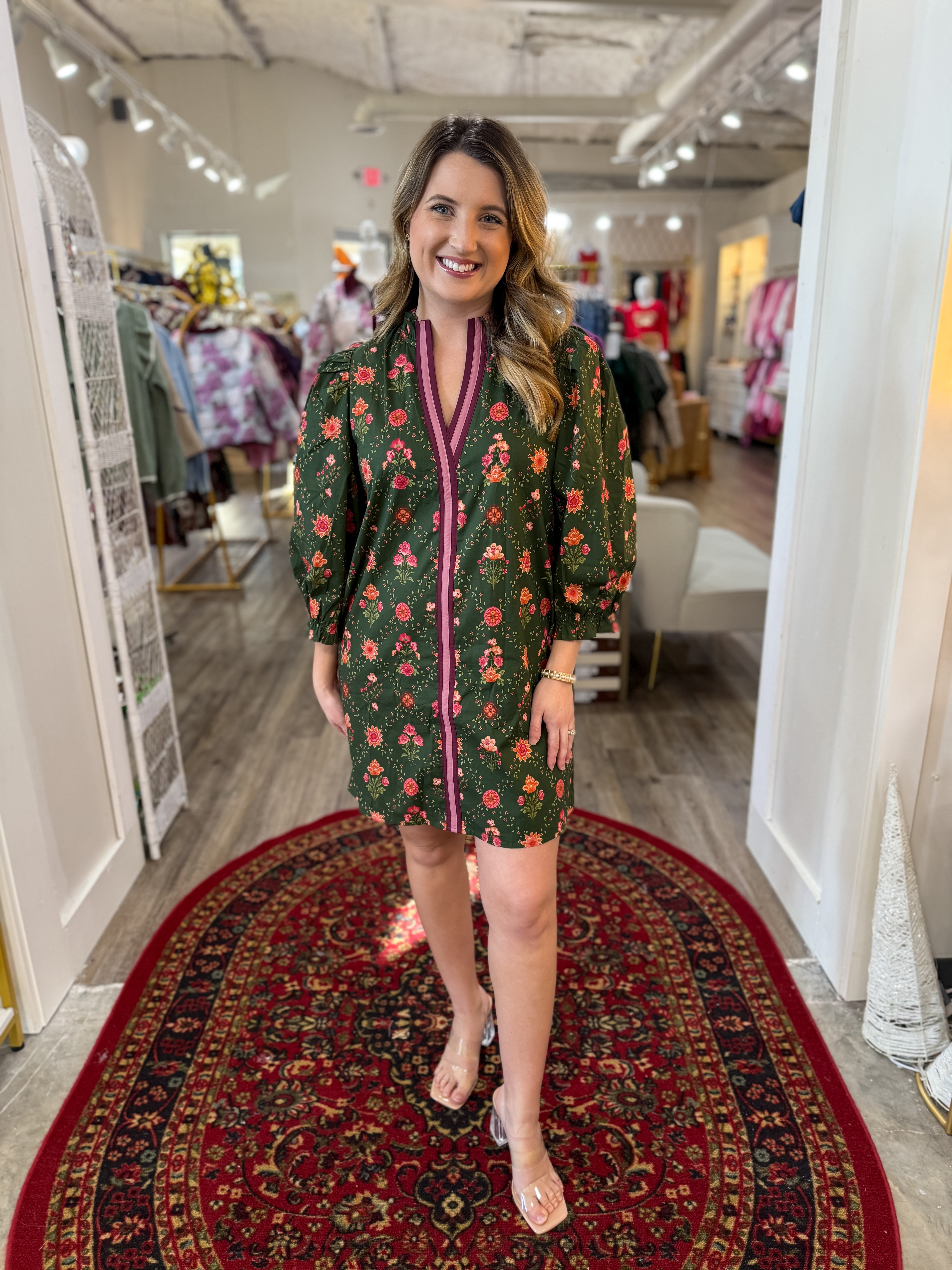 A charming mini dress that feels both playful and polished. Perfect for brunch dates, fall outings, casual parties, or anytime you want an easy statement look with feminine flair.