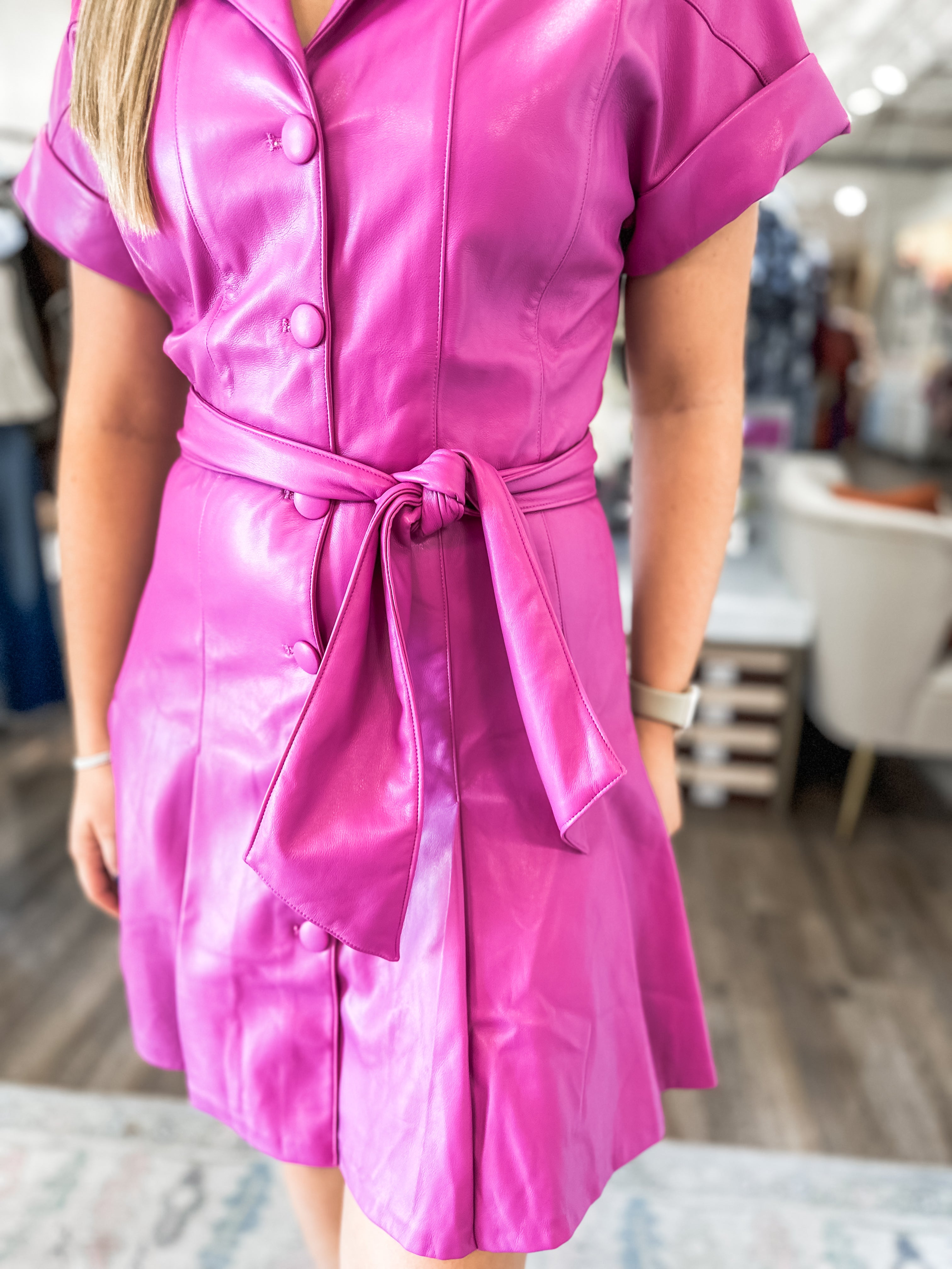 Make a bold entrance with this show-stopping faux leather dress. Perfect for girls’ nights, concerts, or a statement event look, it’s where edgy meets glam.