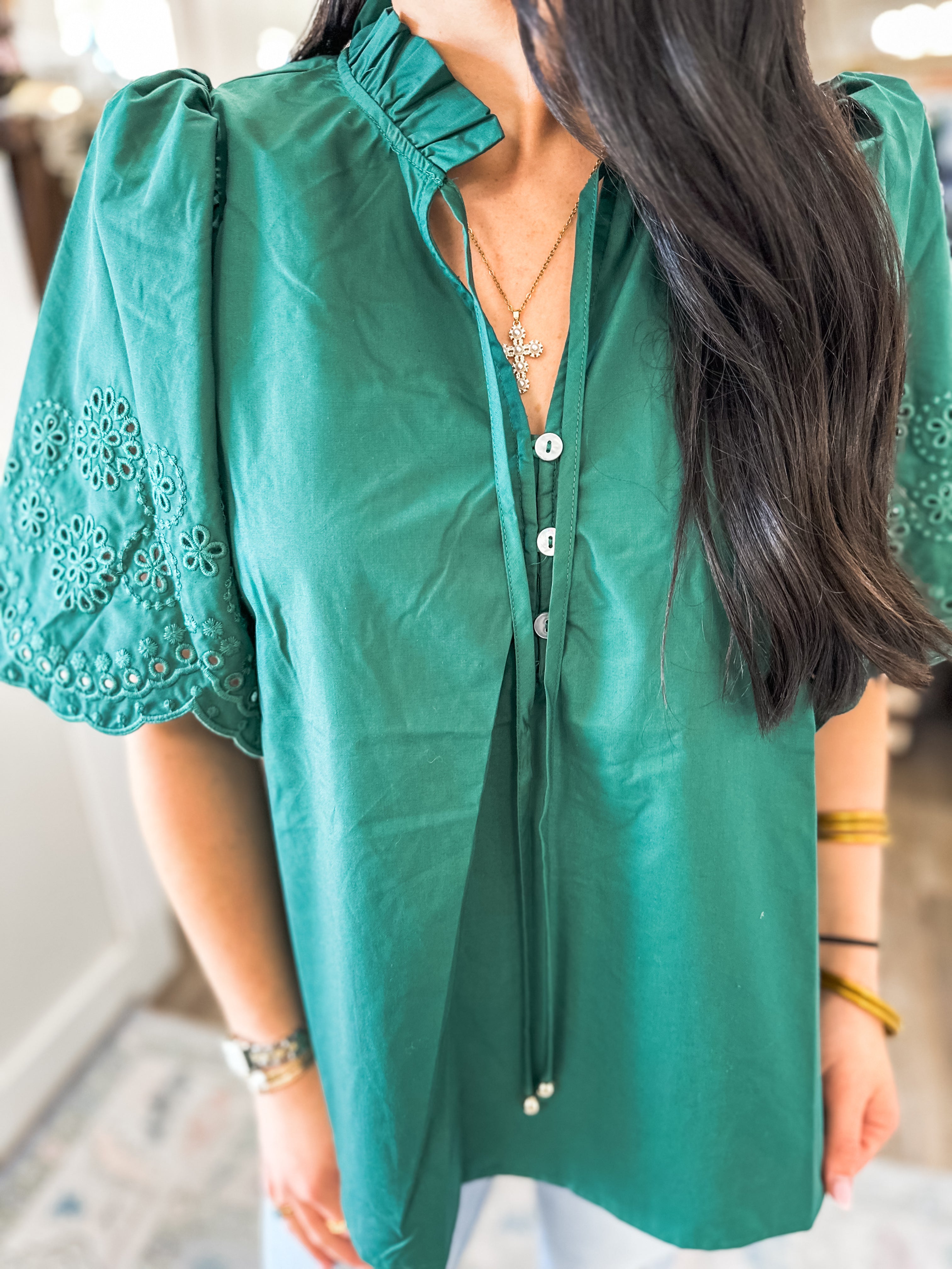 A timeless fall favorite, this hunter green blouse is perfect for everything from weekday wear to weekend outings. Dress it up with trousers and heels or keep it casual with denim and sandals.