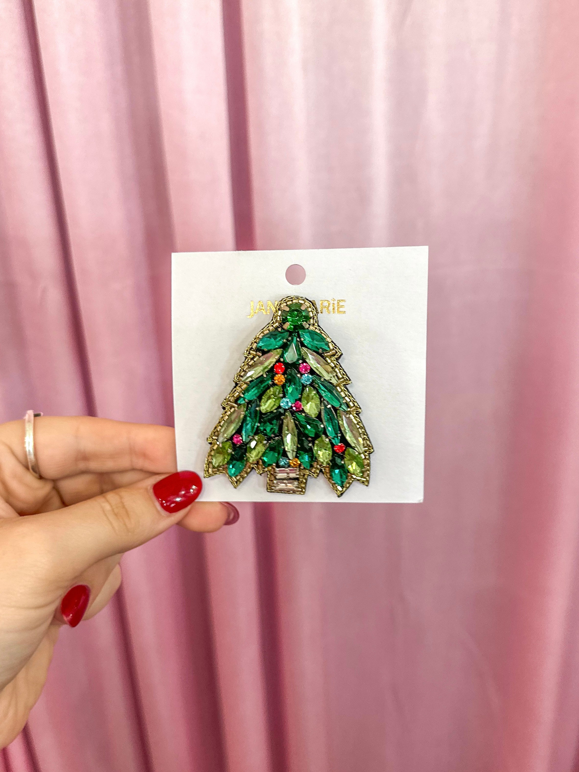 Celebrate the season in style with this festive beaded Christmas tree brooch in vibrant green with multi-colored accents. A cheerful statement piece to pin on sweaters, coats, or scarves during the holidays.