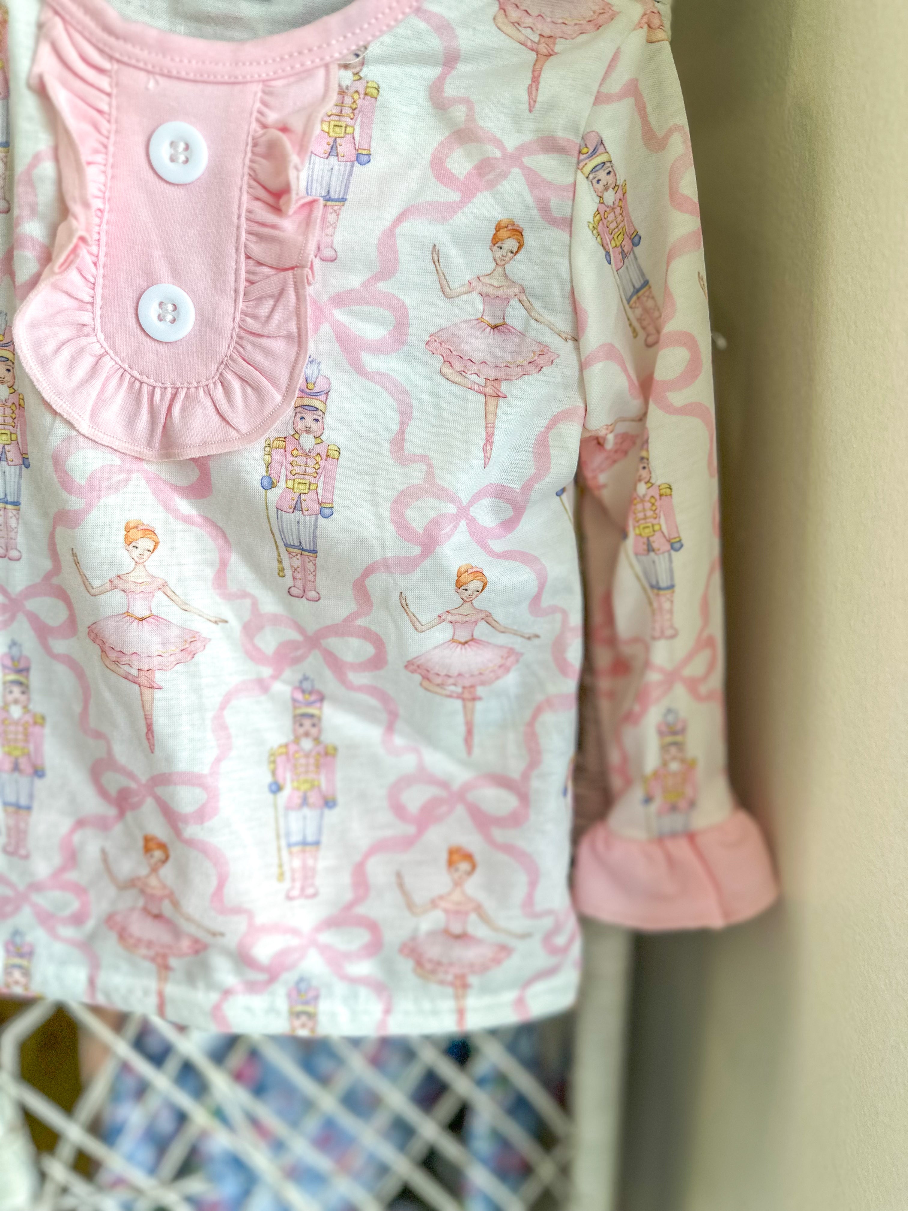 Add a touch of holiday magic to bedtime with this festive pajama set! Featuring a sweet Nutcracker and bow print, it’s the perfect choice for Christmas Eve, cozy nights, or unwrapping gifts by the tree.