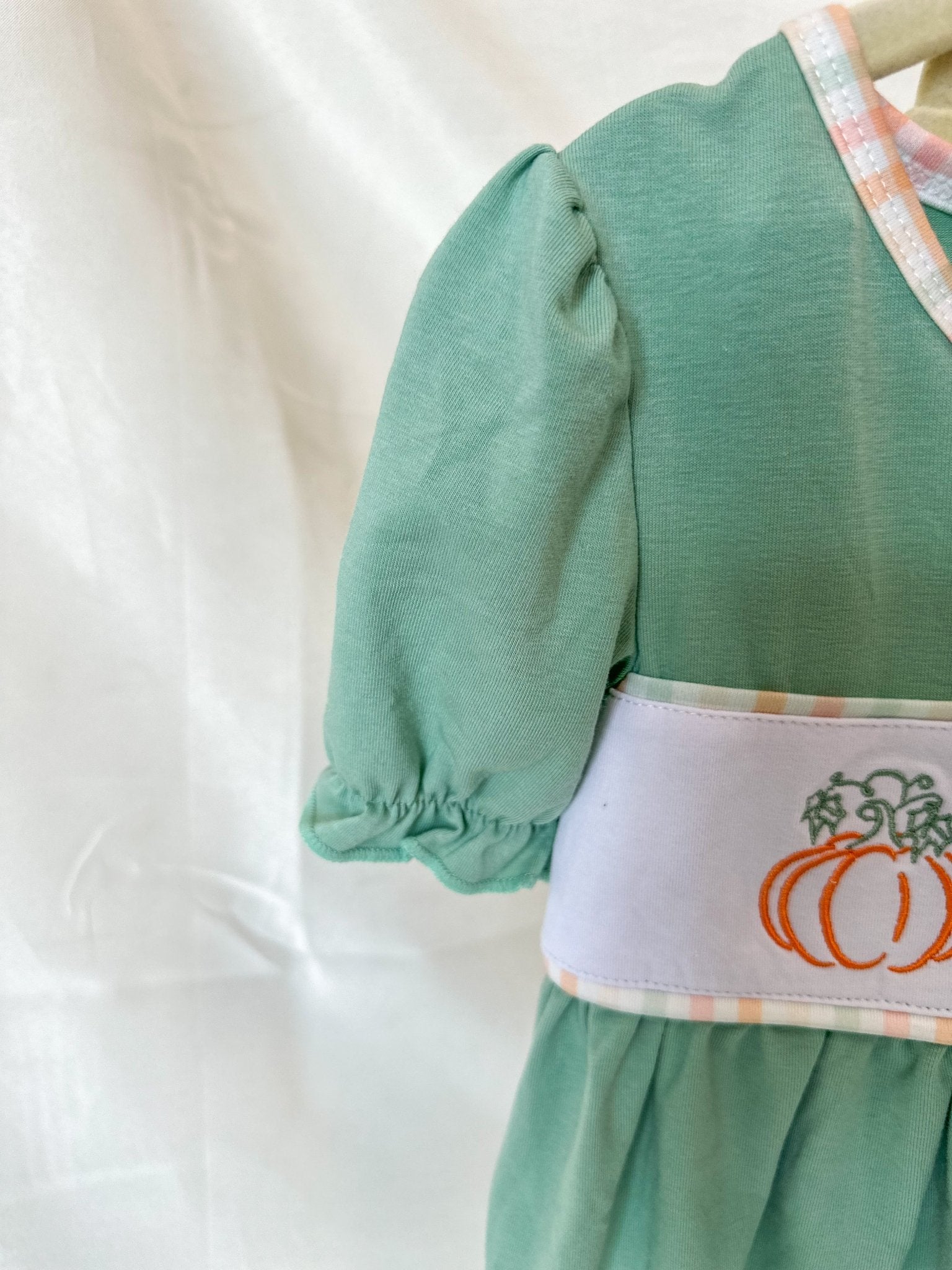 The perfect outfit for the pumpkin patch🎃 From the green and orange plaid details to the embroidered pumpkins we are in LOVE with this fall set!