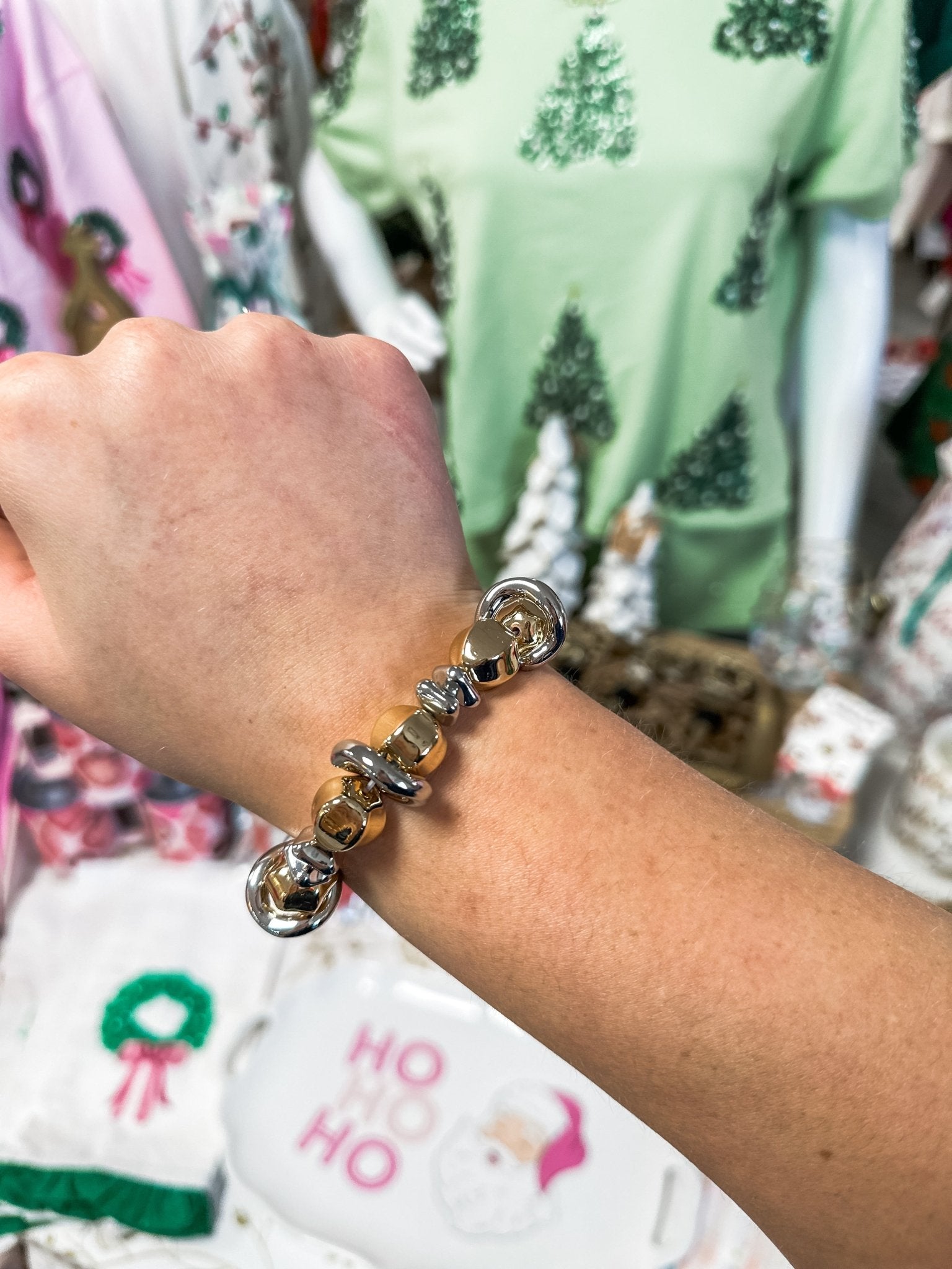 This mixed-metal beauty is the perfect everyday bracelet to elevate any outfit. The blend of gold and silver beads makes it easy to pair with all your jewelry—stack it up or let it shine solo.