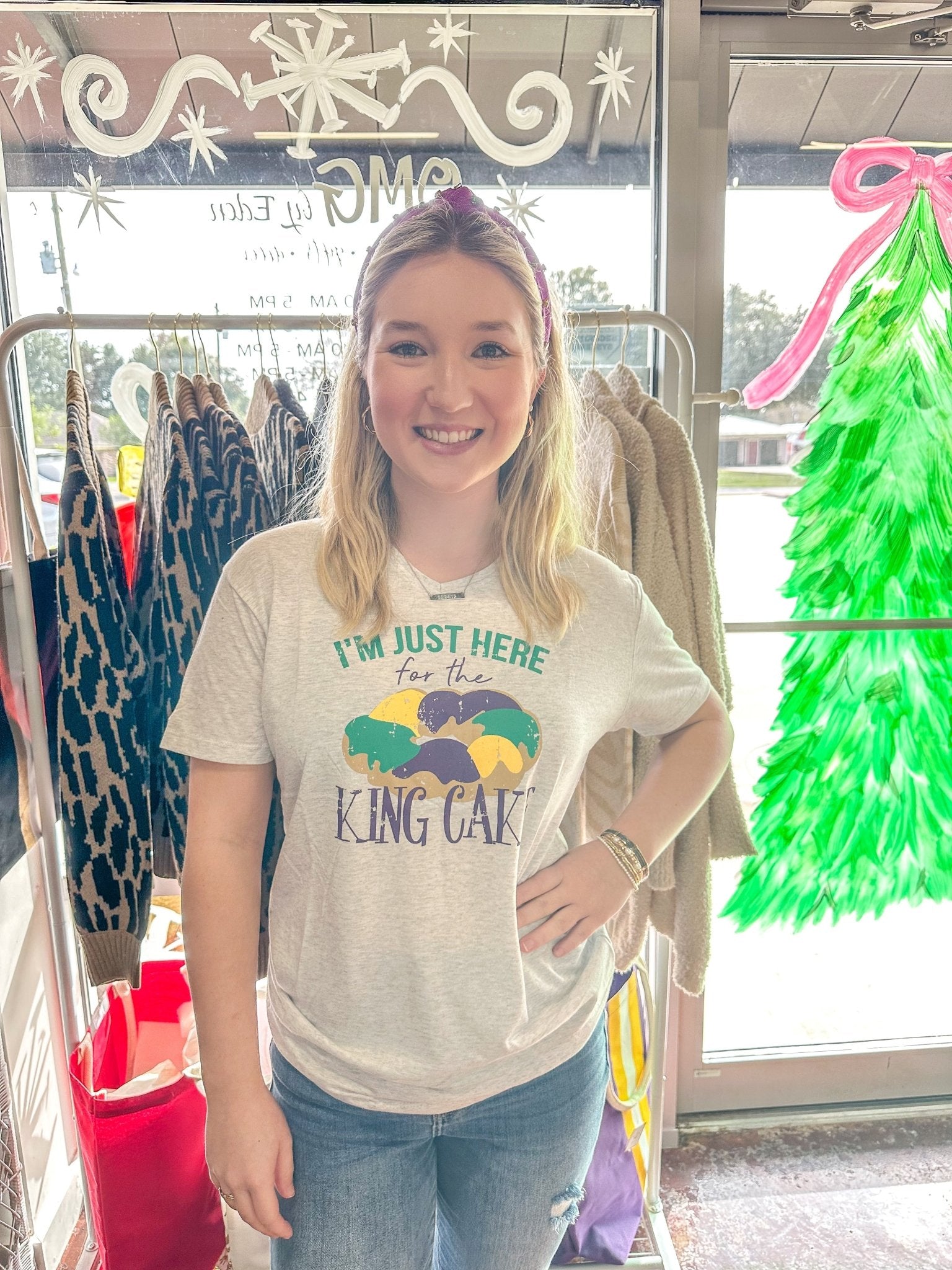 Here for the King Cake Heather T-Shirt- This T-Shirt is perfect for all the king cake lovers out there! If you are wanting to stay causal but cute this Mardi Gras, we have the perfect outfit for you! True T-Shirt Fit!