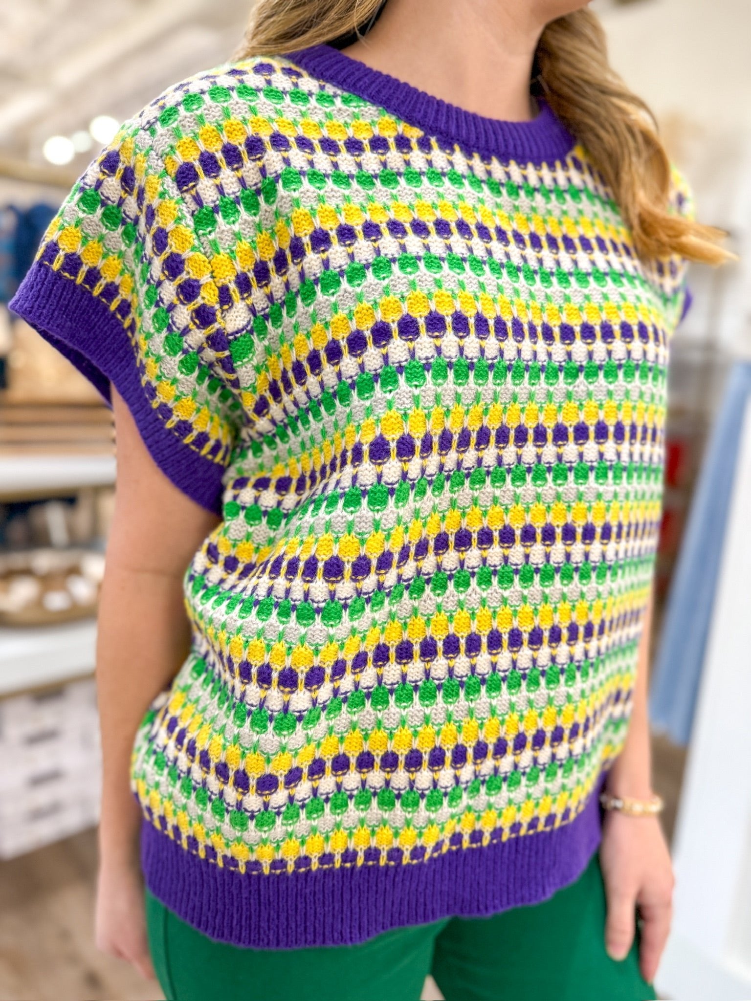 Mardi Gras Style Color Stripe Round Neck Sweater Top