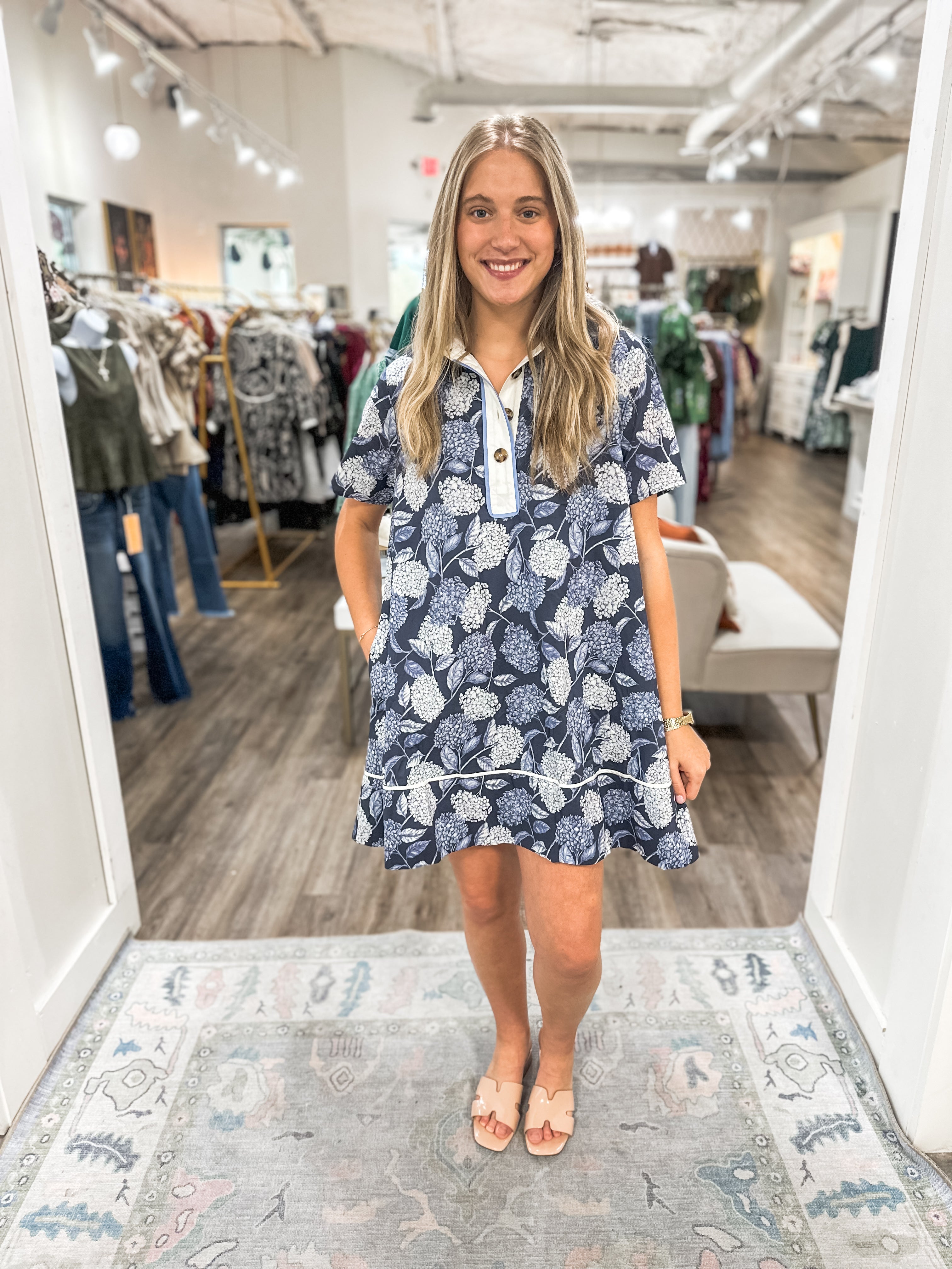 Perfect for brunch, showers, or a day exploring with friends, this mini dress brings a timeless floral feel with a fresh modern twist.