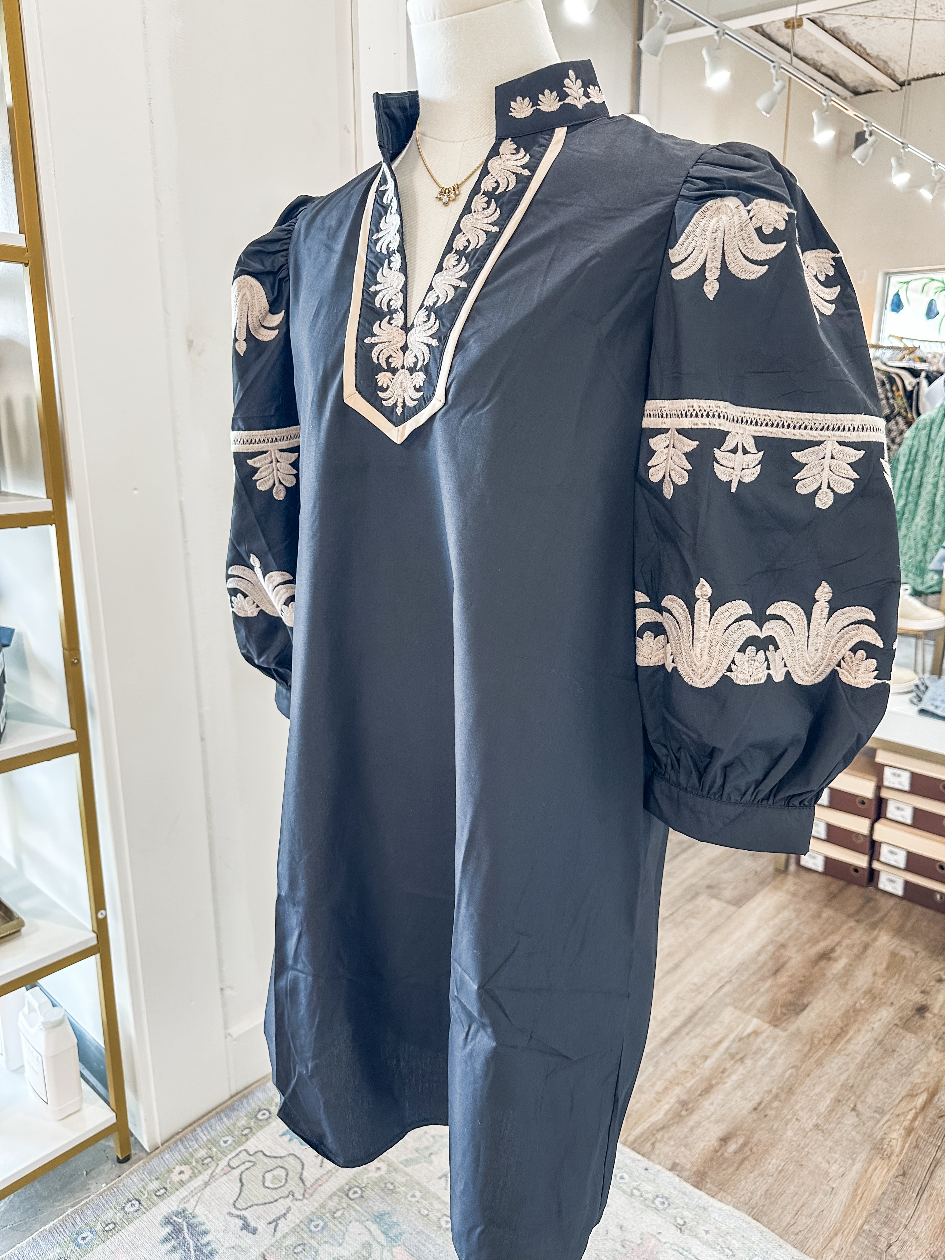 Classic with a statement twist, the Black Ever After Embroidered Mini Dress is made for fall soirées, festive nights out, or Sunday brunch with the girls. Its timeless black base and bold cream embroidery make it a versatile yet unforgettable piece.