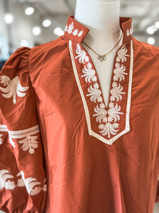 Brick Whisper Stitch Collared Short Sleeve Mini Dress