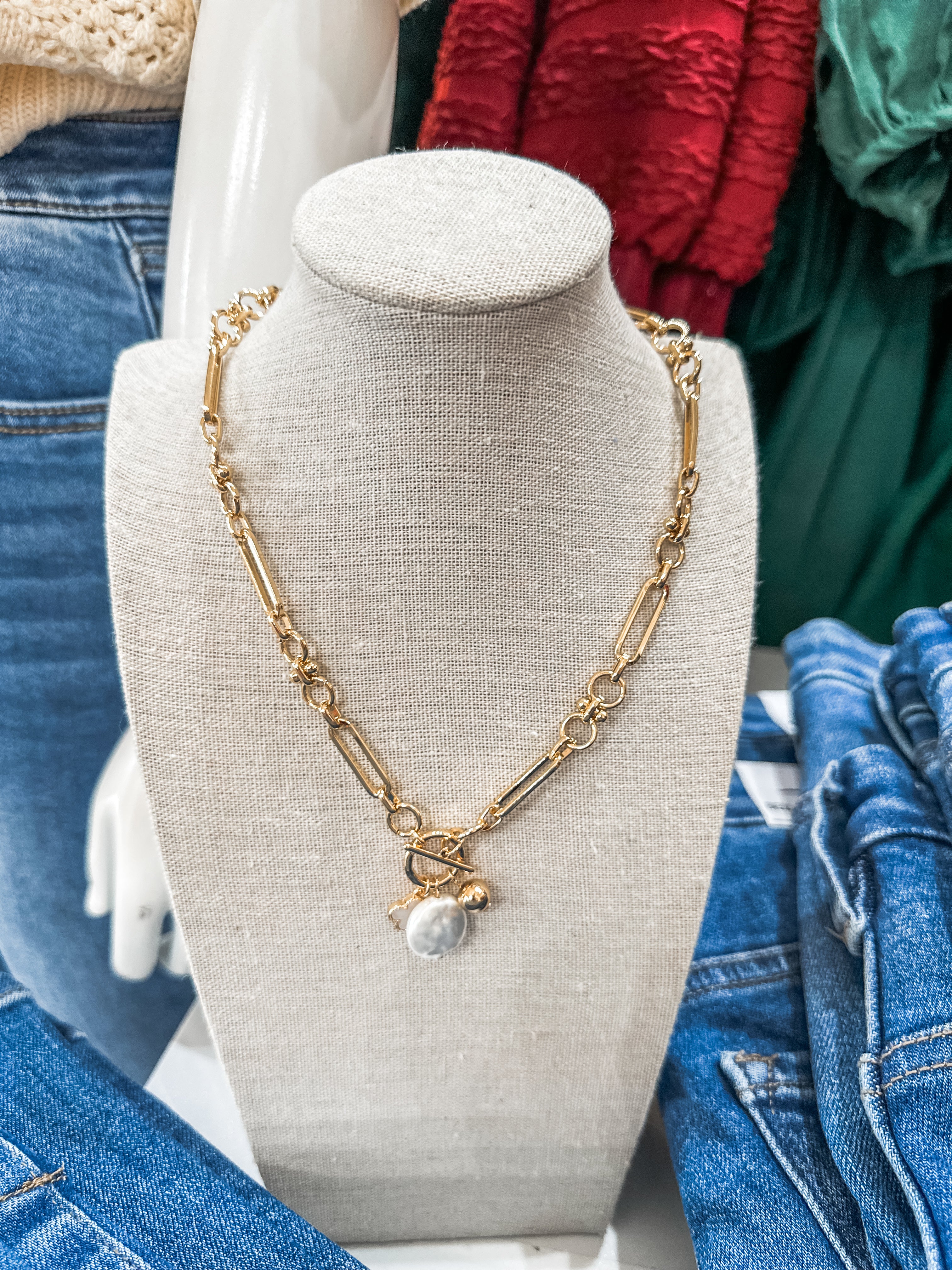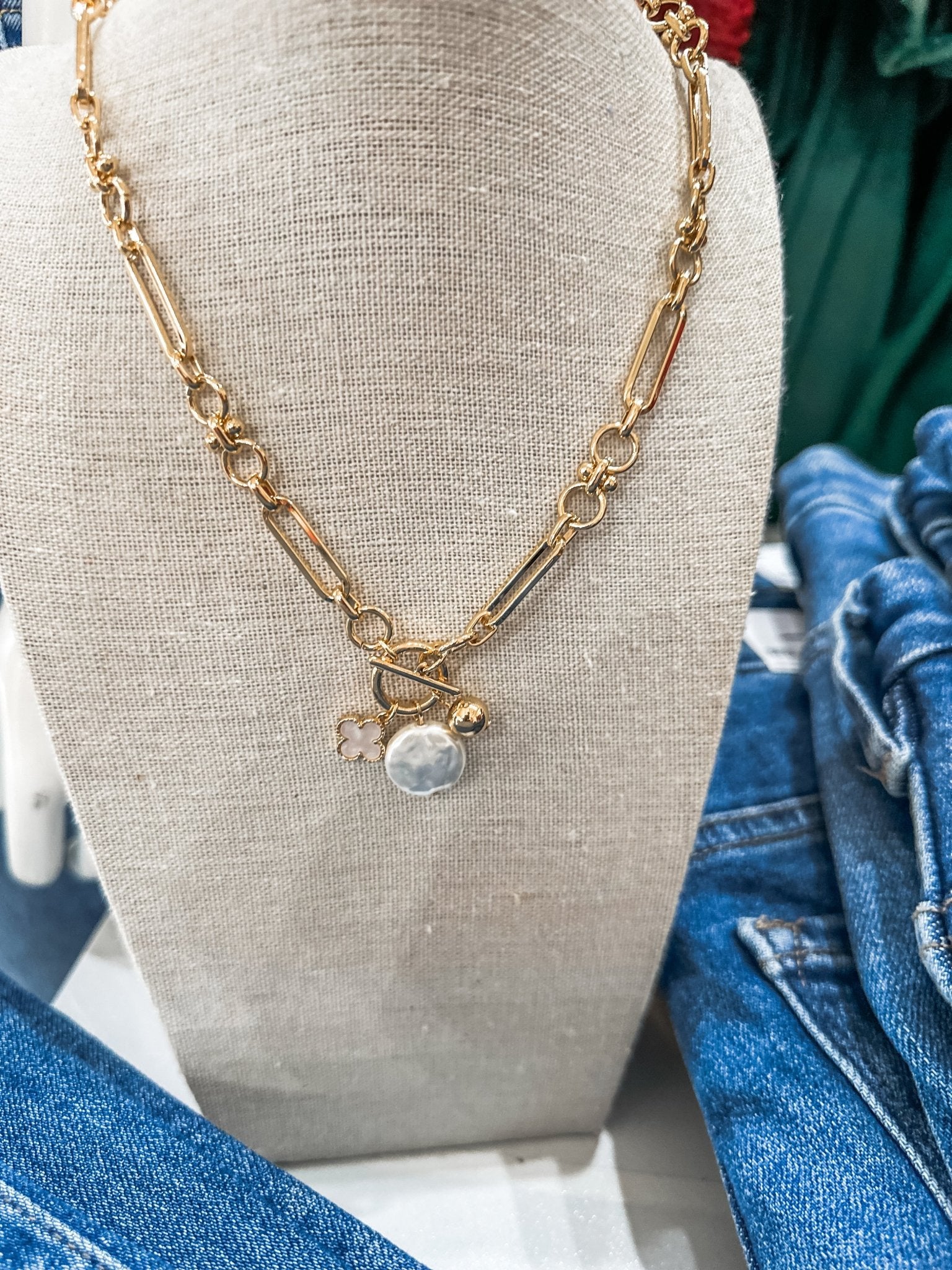 Elevate any outfit with this luxe, feminine necklace featuring a gorgeous gold chain paired with delicate pearl clover charms. It’s the perfect blend of classic elegance and modern boutique style — an easy go-to for everyday wear or special occasions.