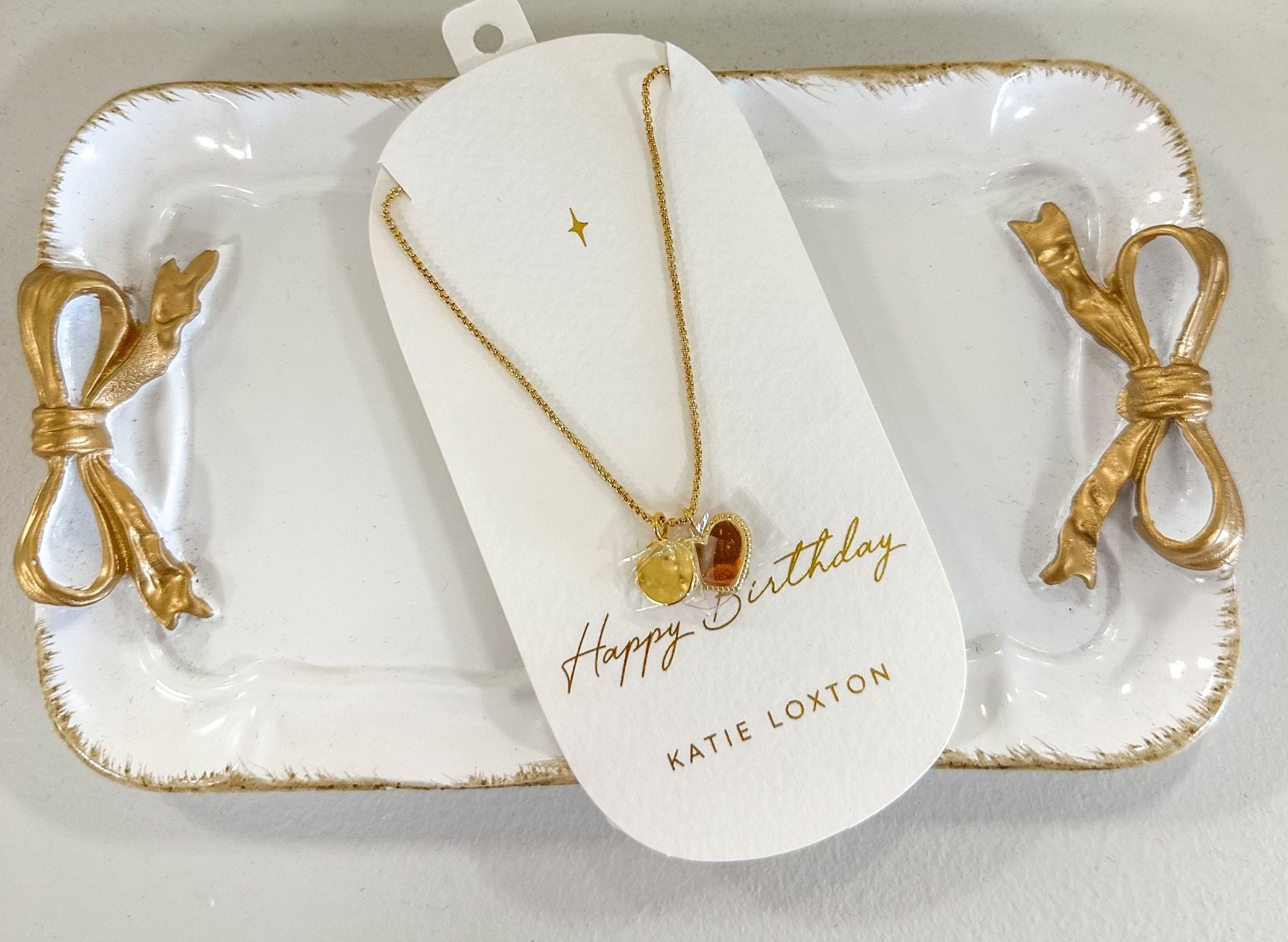 Celebrate in style with the Happy Birthday Charm Necklace by Katie Loxton. This gold-coated treasure adds a sparkling touch to any birthday outfit, making the special day even brighter. Perfect for gifting or treating yourself, it’s a playful way to wear your celebration close to your heart.