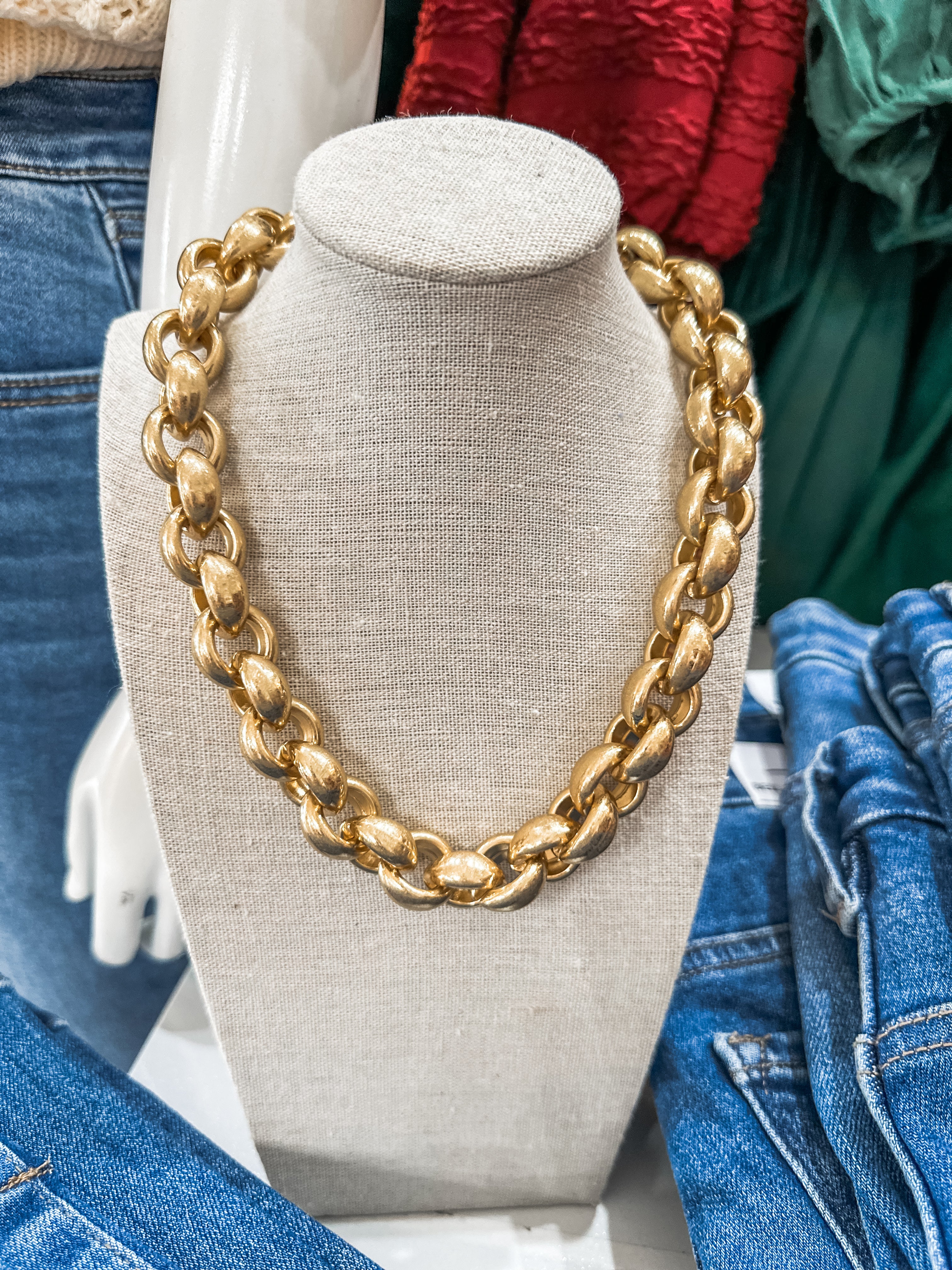 The Sophie Gold Layered Chain Necklace brings bold elegance to every outfit with its chunky layered links and rich, brushed-gold finish. It’s the perfect mix of timeless + trendy — elevating basics, sweaters, dresses, and holiday looks with ease.