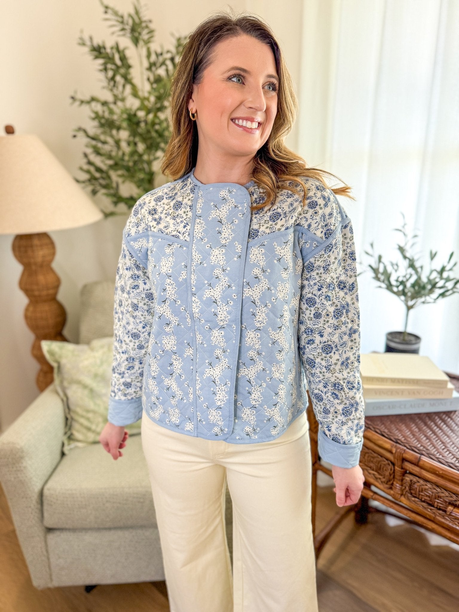 Soft, sweet, and perfectly layered, the Blue Vintage Petals Quilted Jacket brings a charming touch to everyday outfits. With delicate floral prints and cozy quilted texture, this lightweight jacket is the kind of piece you’ll reach for again and again when you want a little warmth without sacrificing style.