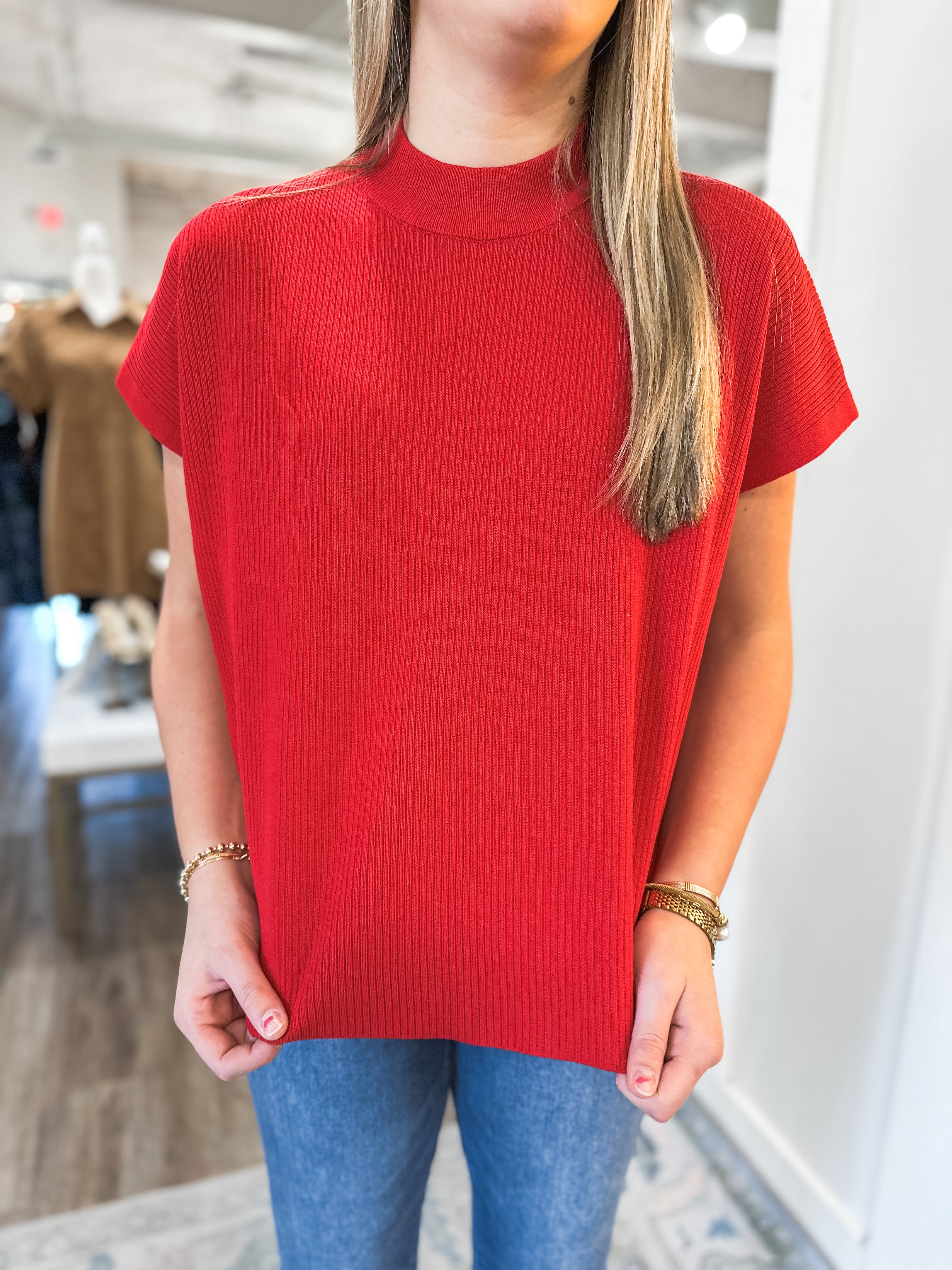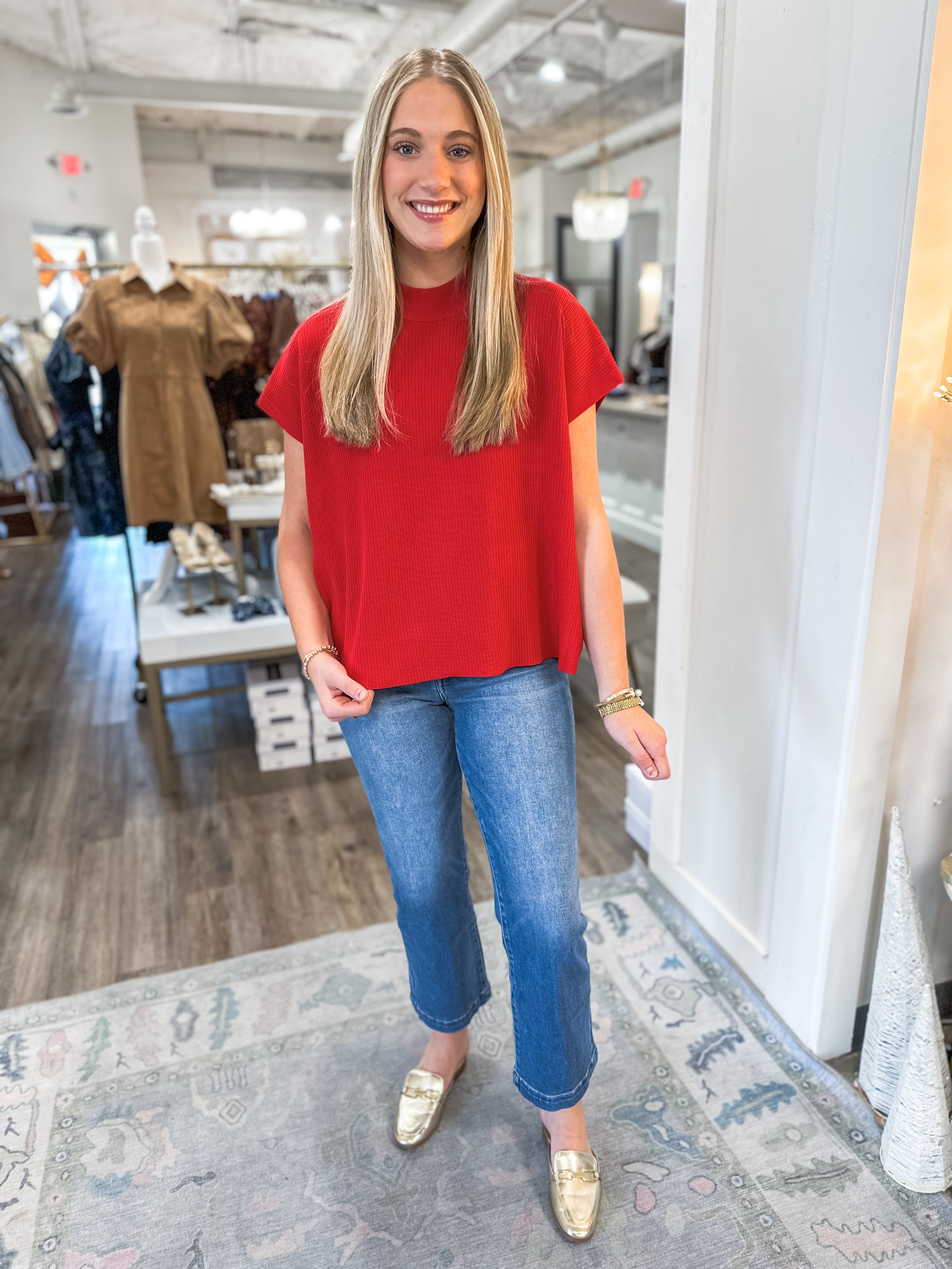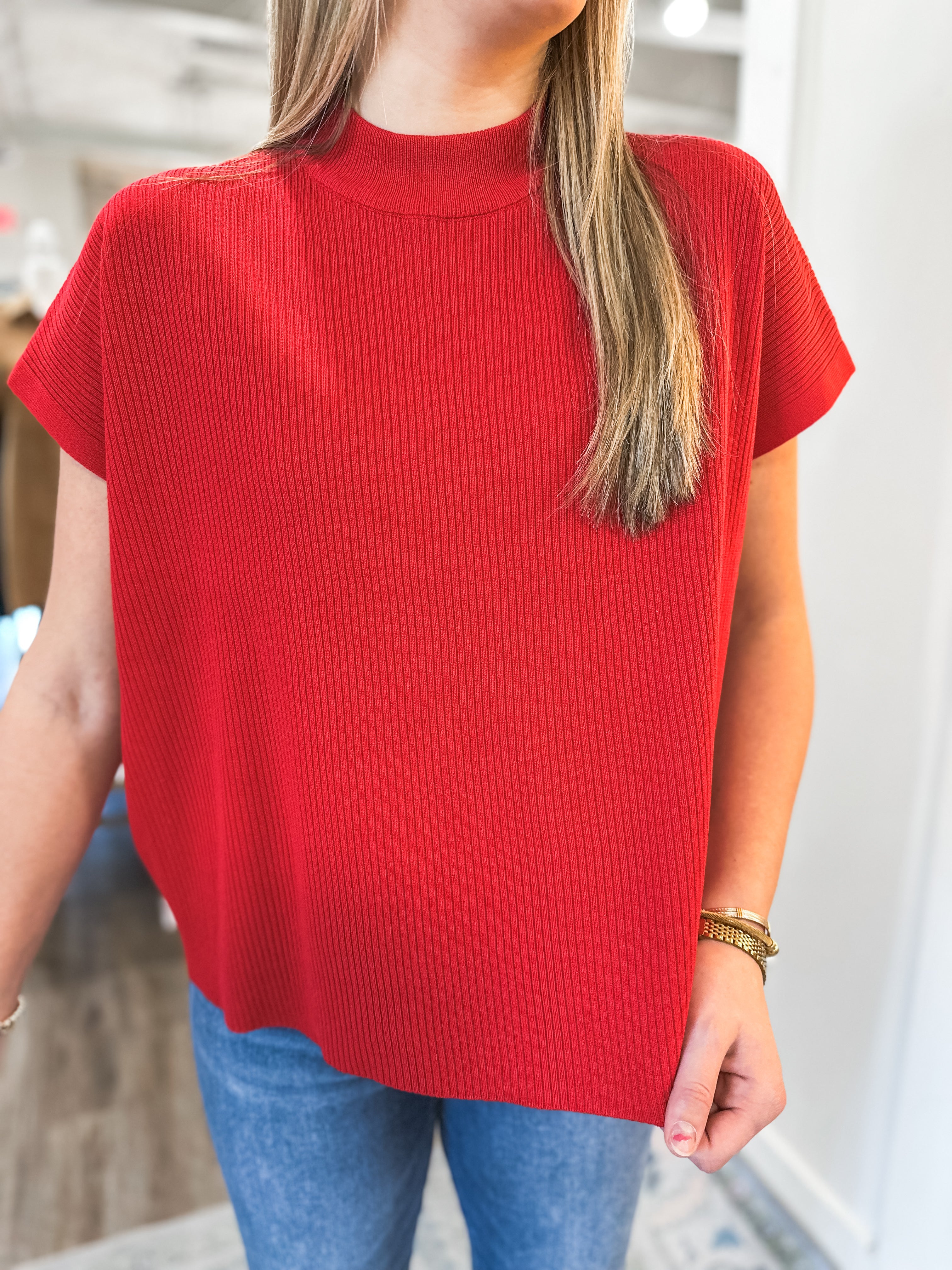 Kelly Green Mock Neck Short Sleeve Boxy Sweater