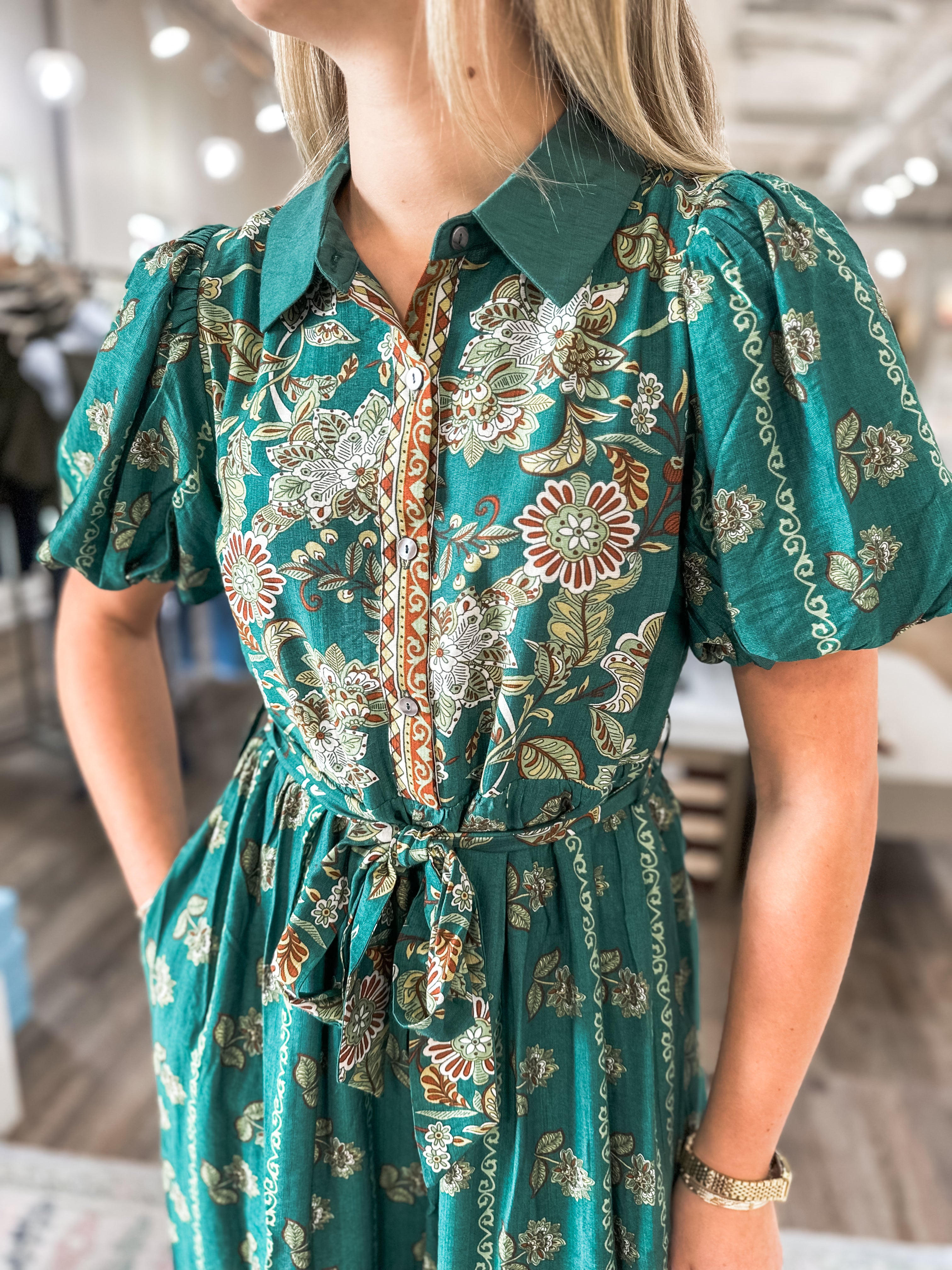 From fall festivities to family photos, this midi dress is a standout with its warm harvest tones and flowy, flattering fit.