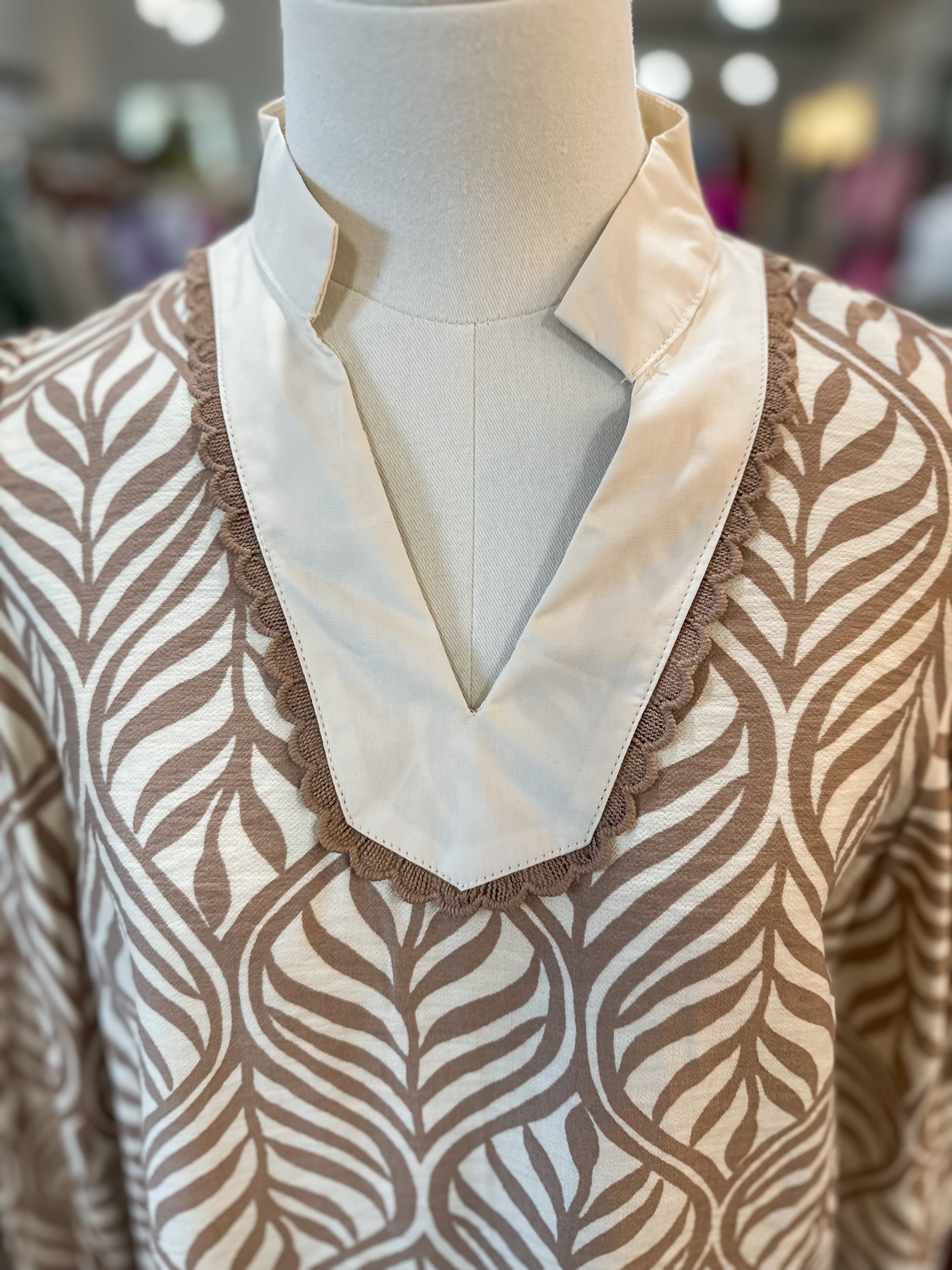 A polished yet relaxed blouse that brings a touch of pattern and charm to your everyday wardrobe. The Mocha Palmetto Print Long Sleeve Blouse is perfect for workdays, casual dinners, or dressed-down weekends when you still want to look put together.
