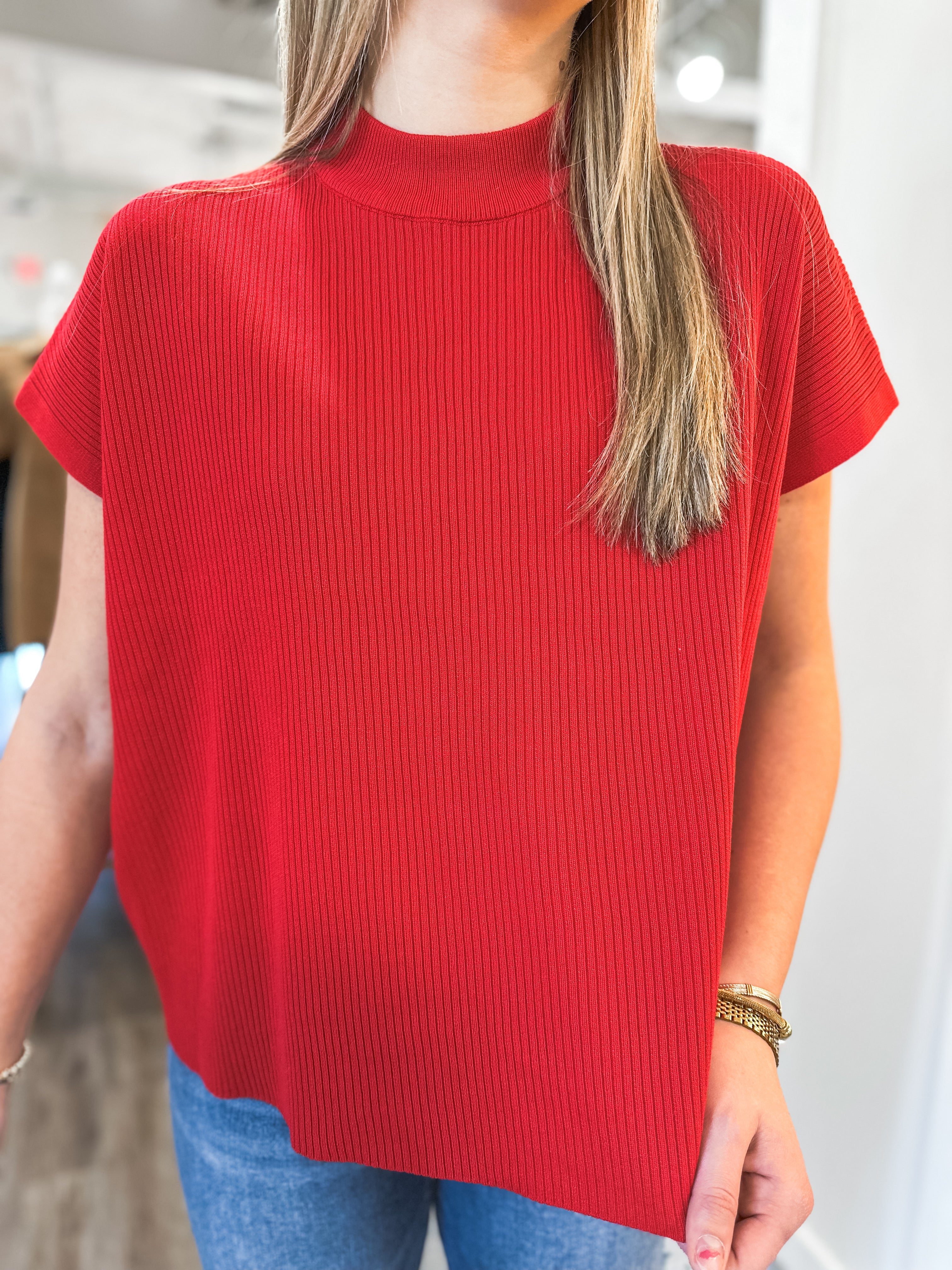 Add a pop of rich, standout color to your wardrobe with this modern mock-neck sweater. The boxy silhouette keeps it relaxed and effortless, while the lightweight knit makes it perfect for layering now and wearing solo later.