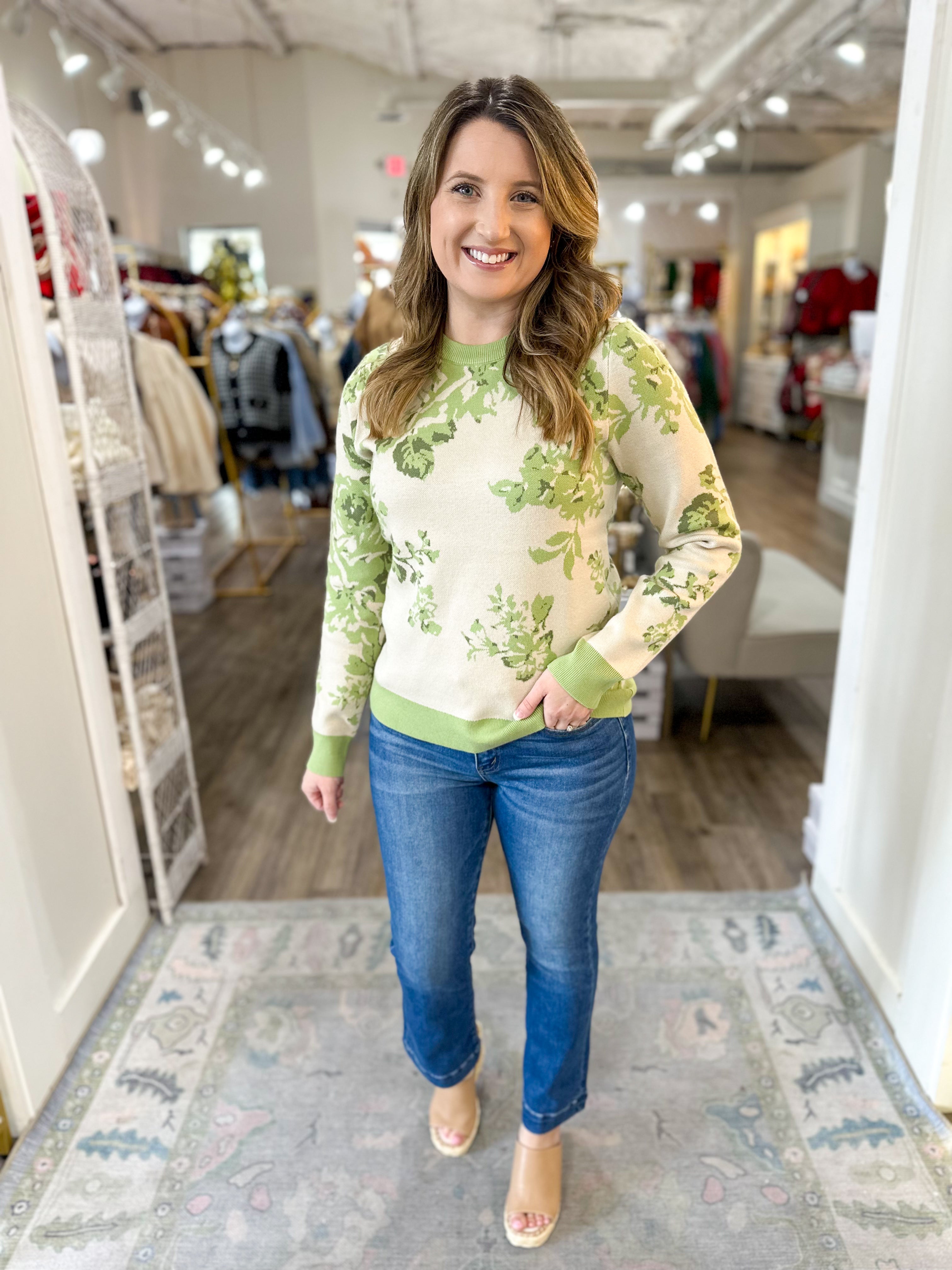 A soft, feminine everyday sweater that brings a touch of botanical charm to your winter wardrobe. Perfect for work, church, holiday gatherings, or simply adding a pretty pop of sage to your weekly rotation.