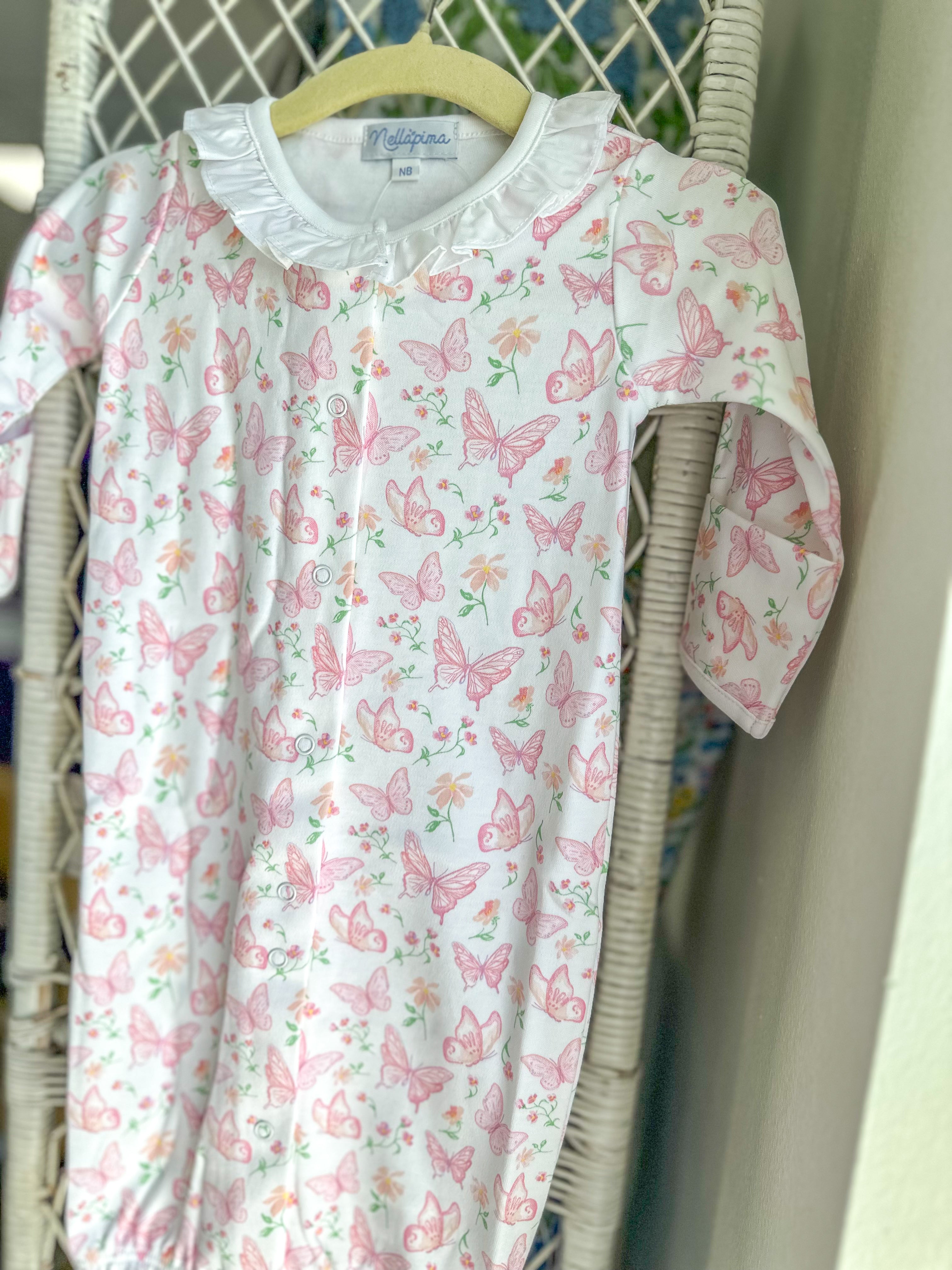 Soft, sweet, and oh-so-practical—this butterflies print converter gown is designed to keep your little one cozy while making diaper changes a breeze. Perfect for newborn days and coming home outfits, it’s as functional as it is adorable.