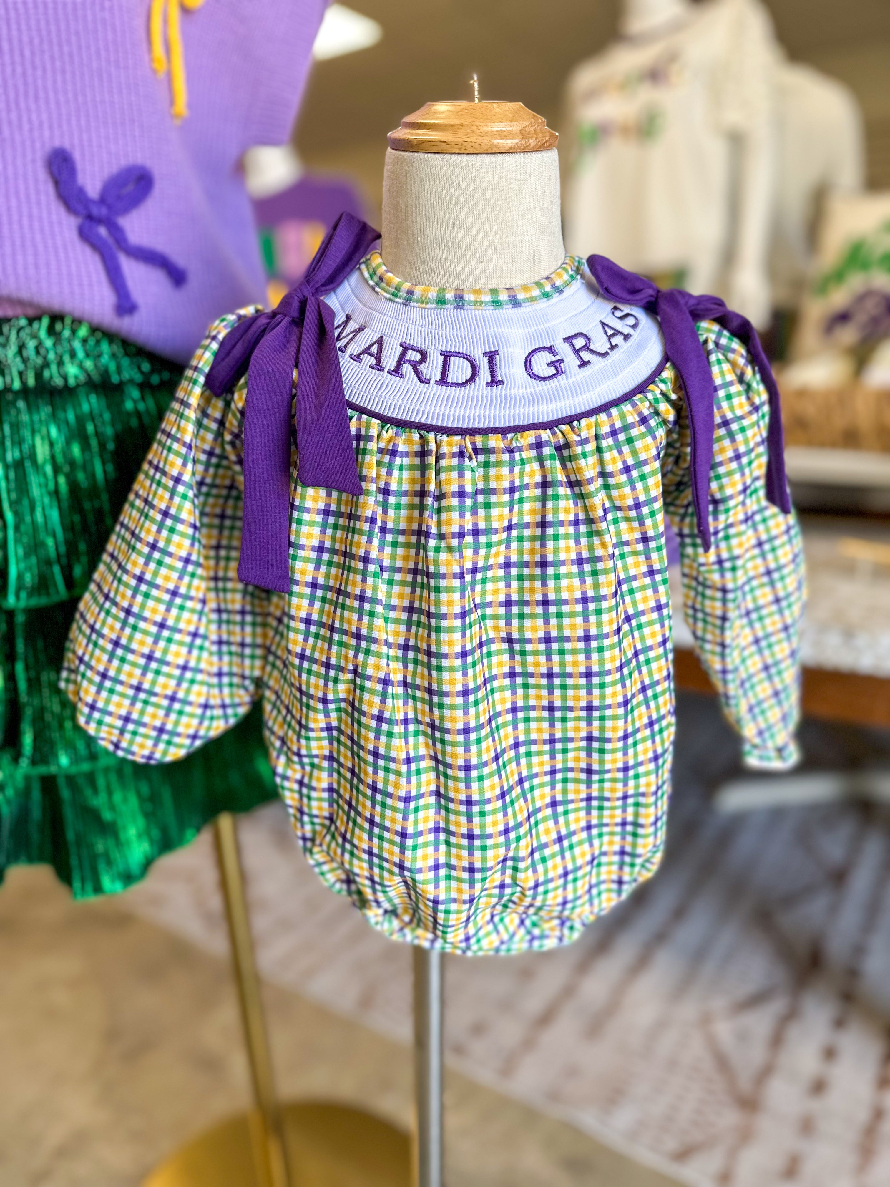 Mardi Gras Plaid Bow Detail Bubble - OMG Custom -- Get ready for a special Mardi Gras season with our latest, CUSTOM OOMG by Eden designs!