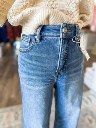 Bluebird Medium Mid Rise Crop Slim Straight Denim Jeans - FLYING MONKEY