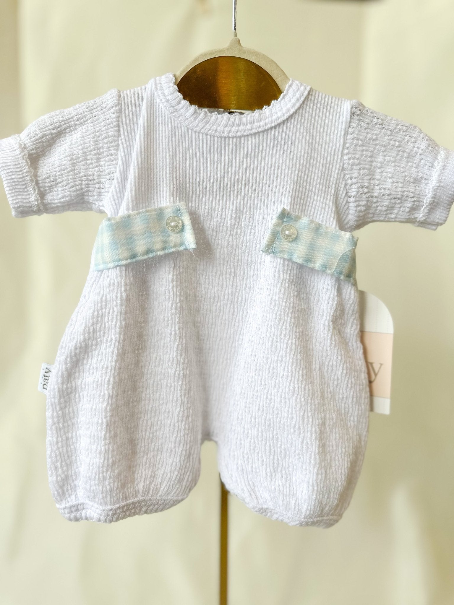 Perfect for special moments and everyday sweetness, this classic bubble is made for your tiniest gentleman 💙 From Sunday snuggles to first photos, it’s a timeless look that never goes out of style. Designed in Paty’s signature textured cotton, this piece features short sleeves, gentle stretch at the leg, and light blue gingham side tabs with button details for a vintage-inspired finish.